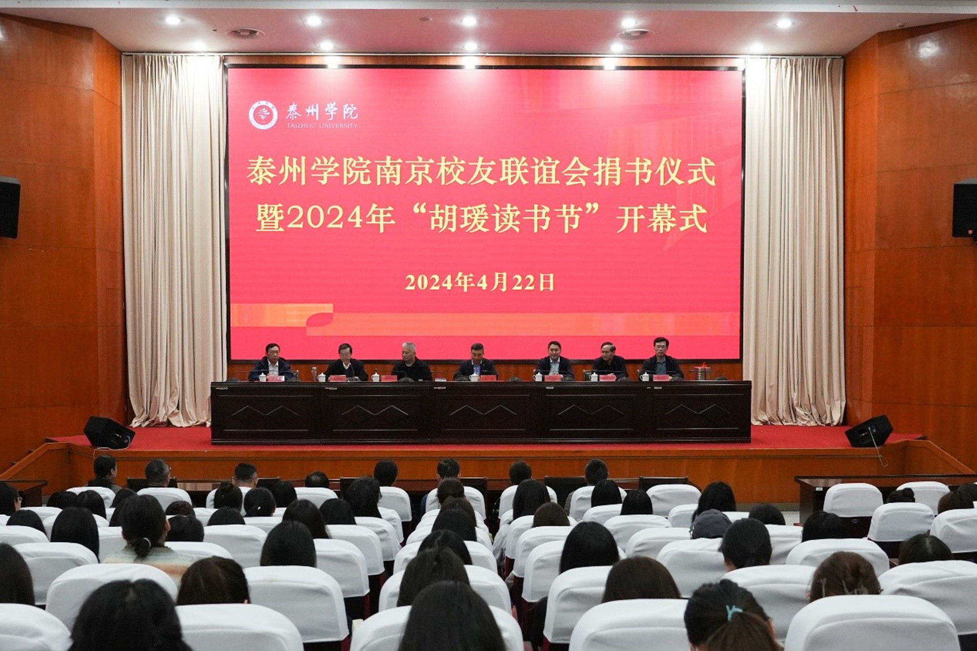 4月22日下午,LETOU国际米兰官网南京校友联谊会捐书仪式暨2024年“胡瑗读书节”开幕式在学校D1216会议室举行。校党委副书记、校长季赛,党委副书记邓友祥,校友联谊会常务副会长张曙光,江苏省演艺集团党委副书记季明刚、译林出版社副社长吴立中、江苏川苏人才开发公司总经理左贵生等南京校友联谊会校友代表,江苏凤凰出版传媒股份有限公司原党委书记、总经理佘江涛,泰州新华书店总经理陆峰,译林杂志执行主编许冬平,江苏人民出版社编辑强薇等人出席会议,校发展规划处/校友办公室、图书馆、宣传部、人事处、人文学院主要负责人及师生代表150余人参加活动。