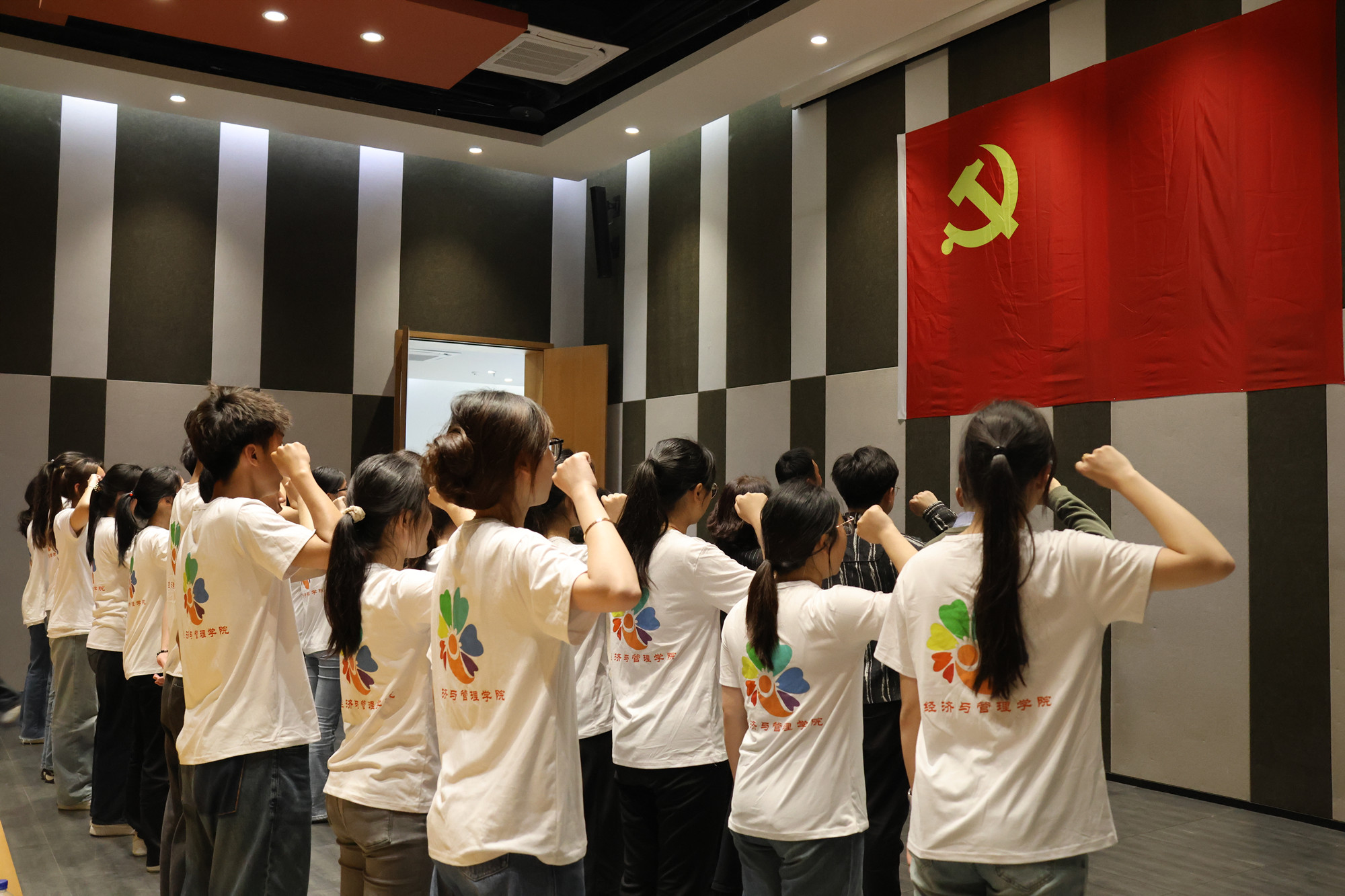 全体党员师生面向鲜红的党旗,重温入党誓词,宣示对党和人民的忠诚,对使命和任务的担当。