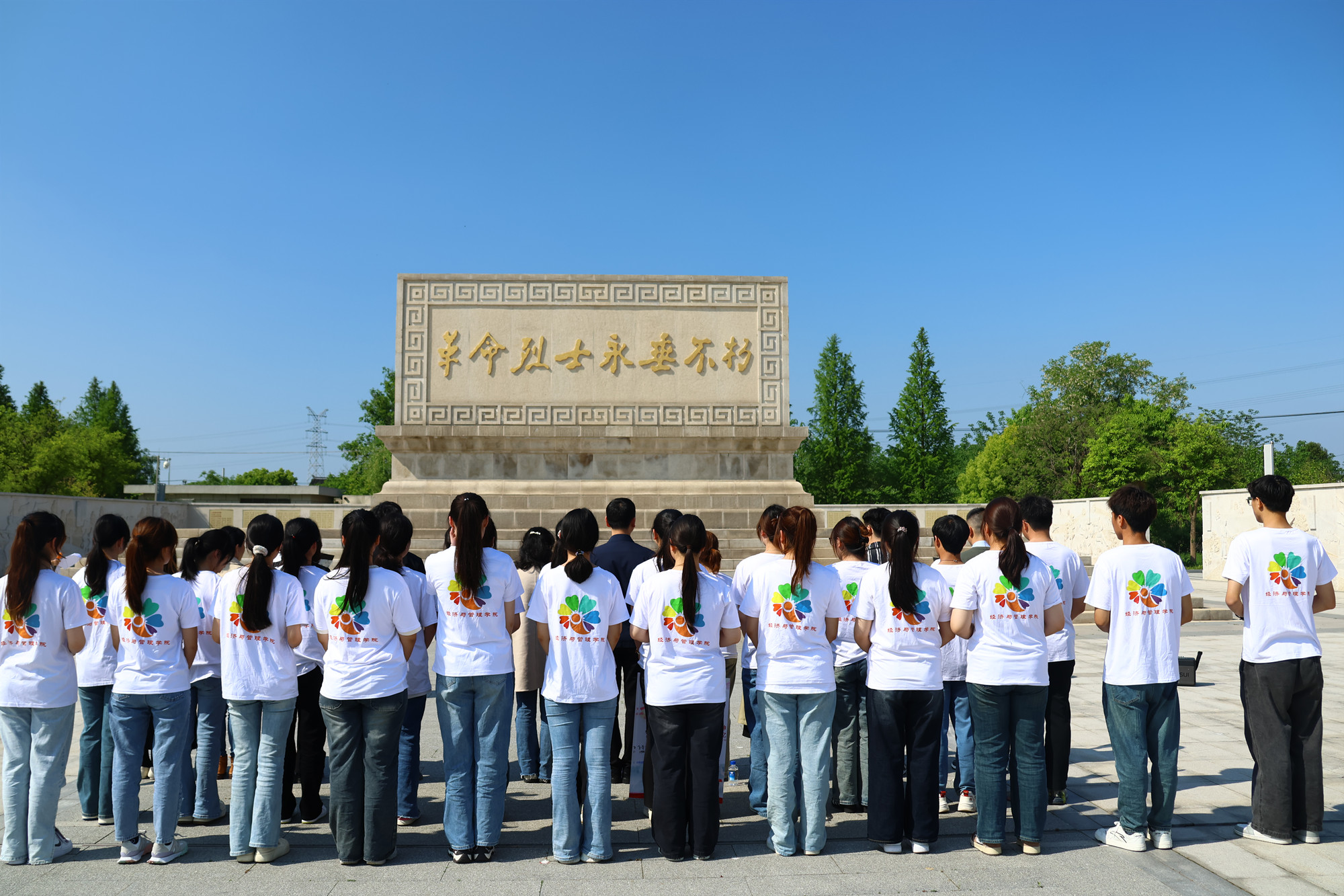 在弯腰沟革命烈士陵园,经济与管理学院党总支书记黄彬带领全体师生瞻仰烈士纪念碑,缅怀在土地革命、抗日战争、解放战争、社会主义建设时期牺牲的英烈。在参观革命纪念馆过程中,全体党员回顾波澜壮阔的靖江革命史,体会到当今幸福生活的来之不易。