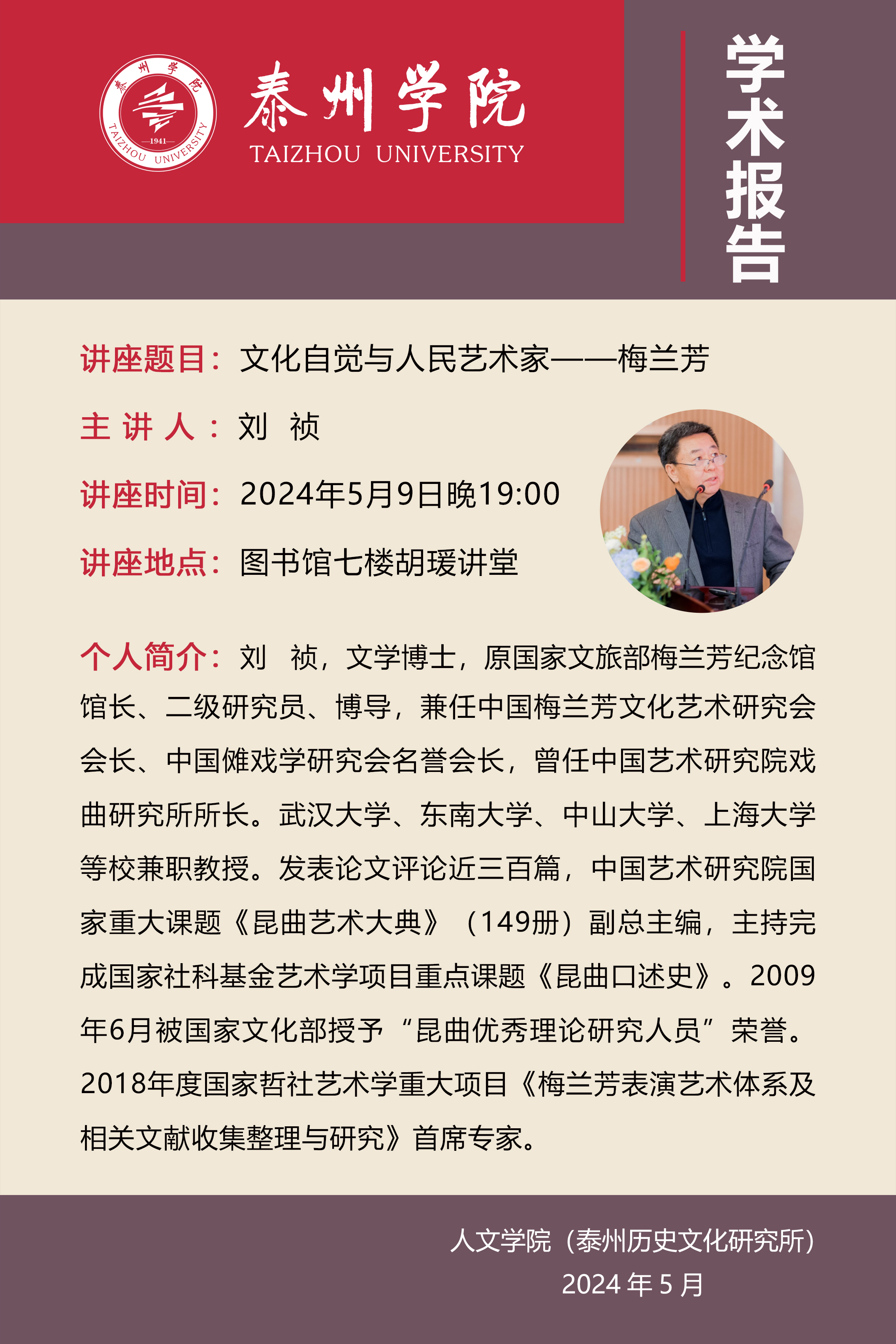 学术报告公告(刘桢:文化自觉与人民艺术家——梅兰芳)