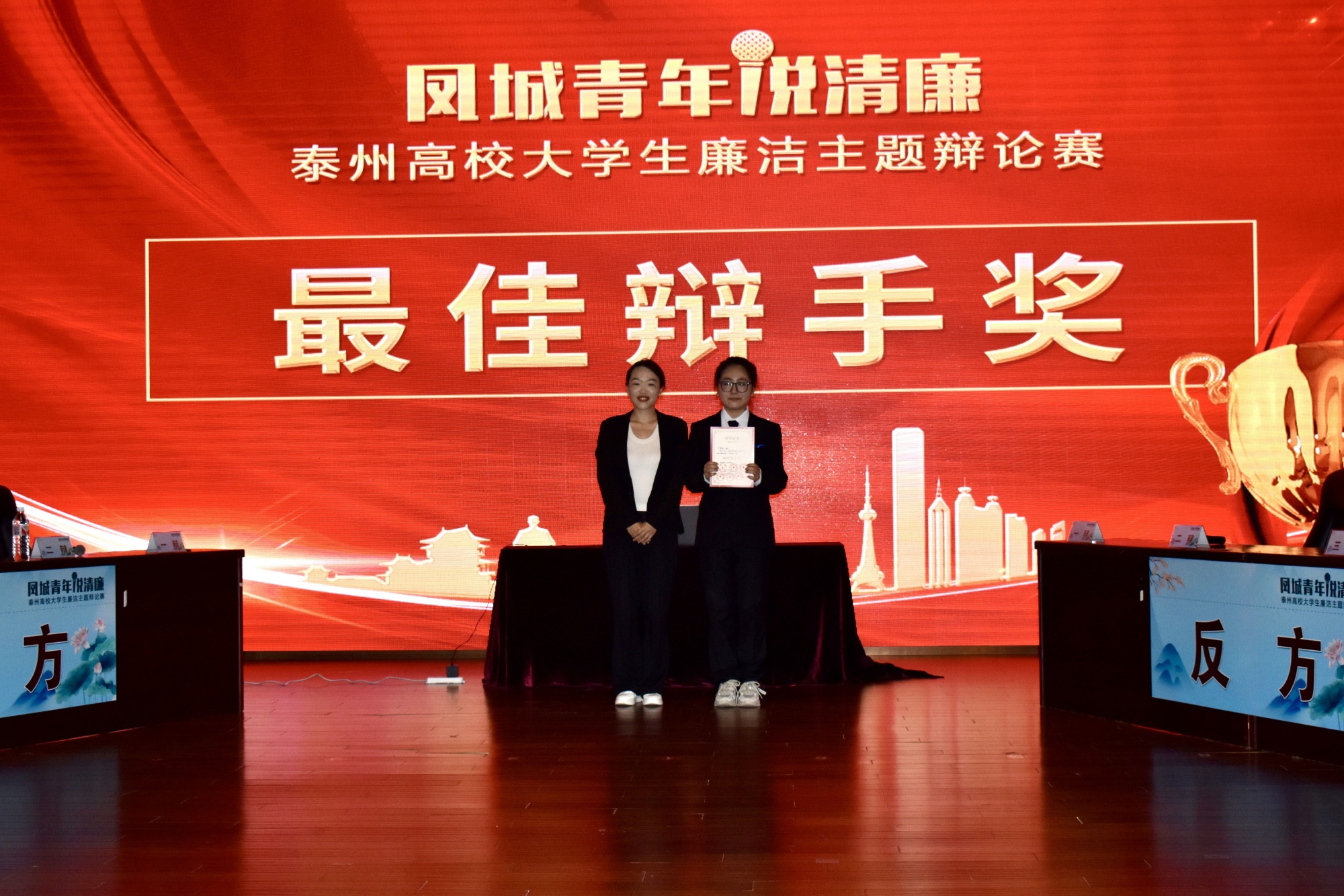 此次“凤城青年说清廉”泰州高校大学生廉洁主题辩论赛活动由泰州七所高校共同组织开展,被纳入泰州市“5·10”廉洁教育月活动。本次活动将校园廉洁文化建设与纵深推进高校全面从严治党、落实立德树人根本任务和党纪学习教育有机融合,推动廉洁文化启智润心,有效调动了青年学生参与廉洁文化建设活动的积极性和主动性,引导青年学生扣好“廉洁人生”第一粒扣子,以新时代廉洁文化建设为学校事业健康发展提供坚强保障。