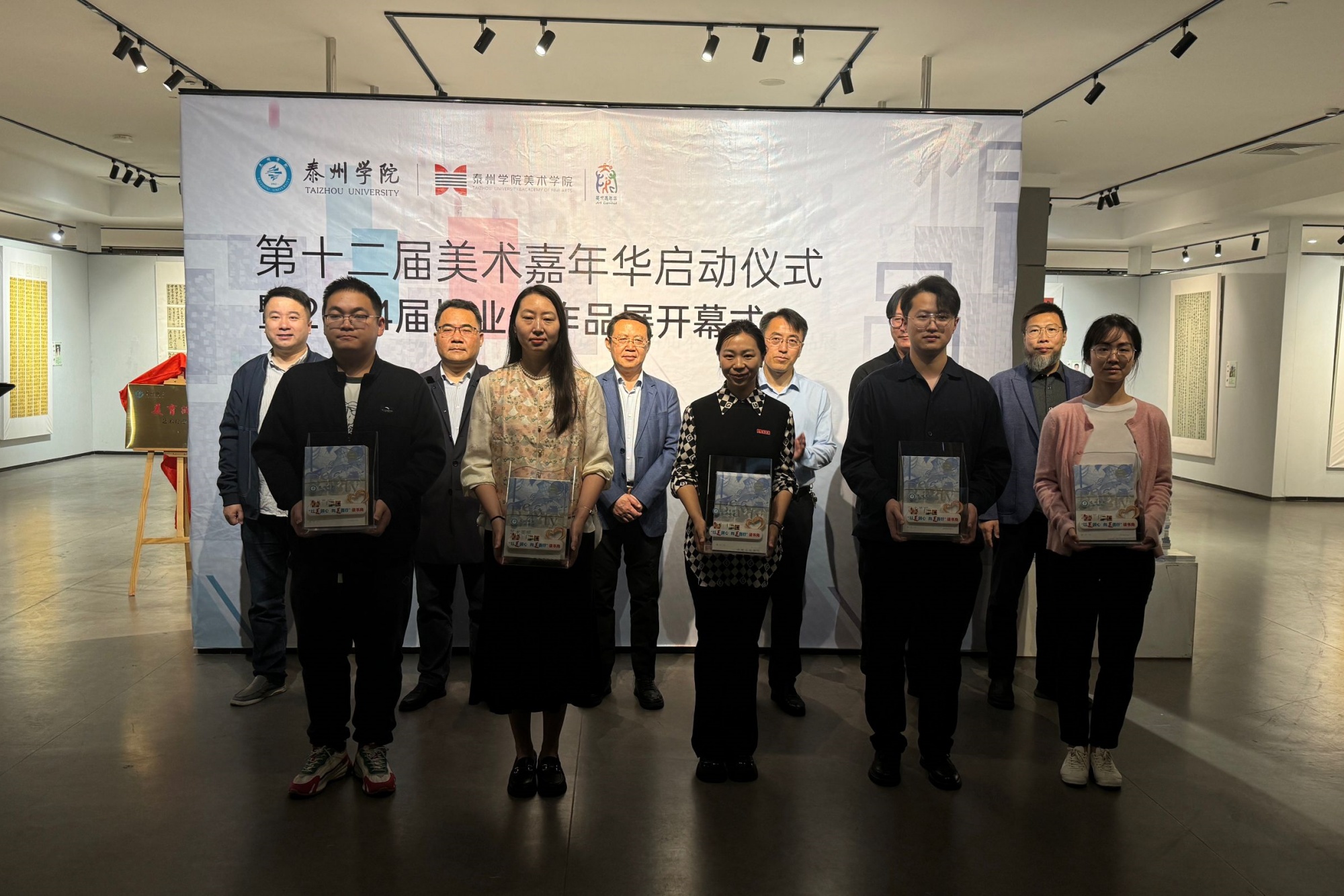 开幕式上,与会领导为“学习雷锋精神,扮靓美丽校园”活动和第二届“东城杯”泰州市大学生文创大赛获奖作品颁奖,为各二级学院“以美润心•向美而行”读书角赠书,为“美育润心”艺术疗愈工作室揭牌。