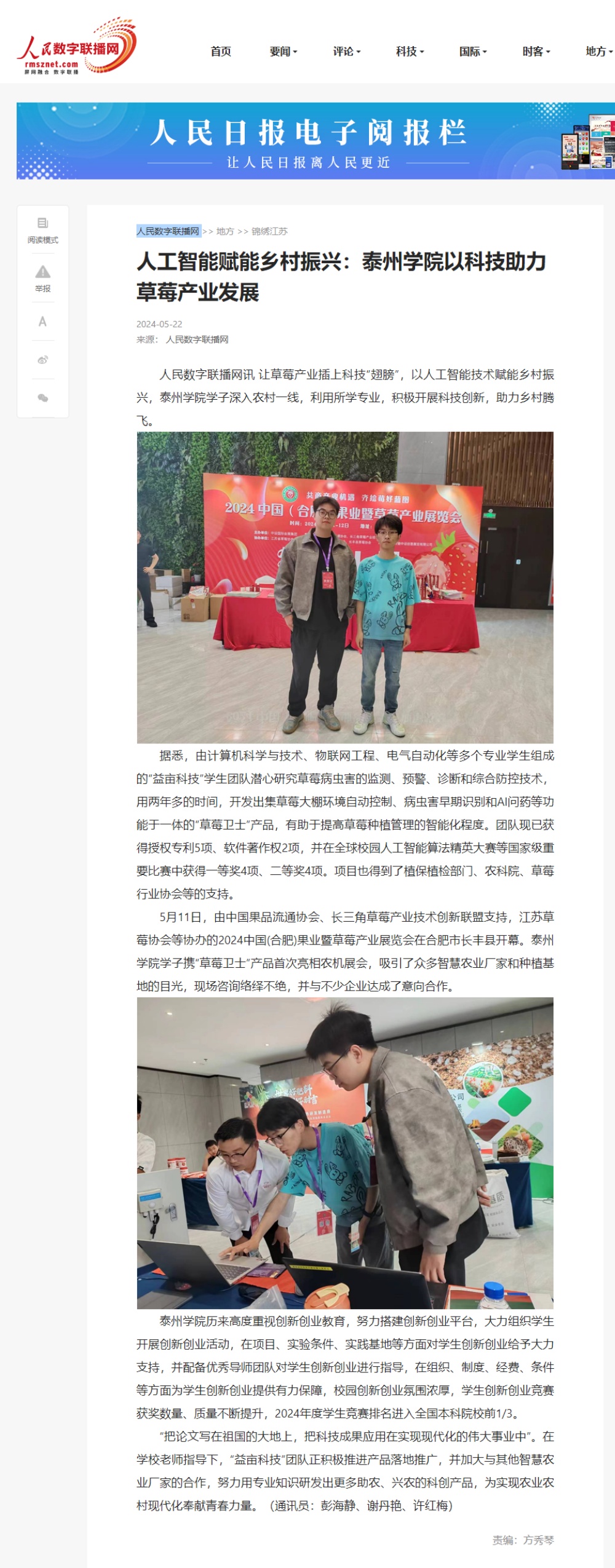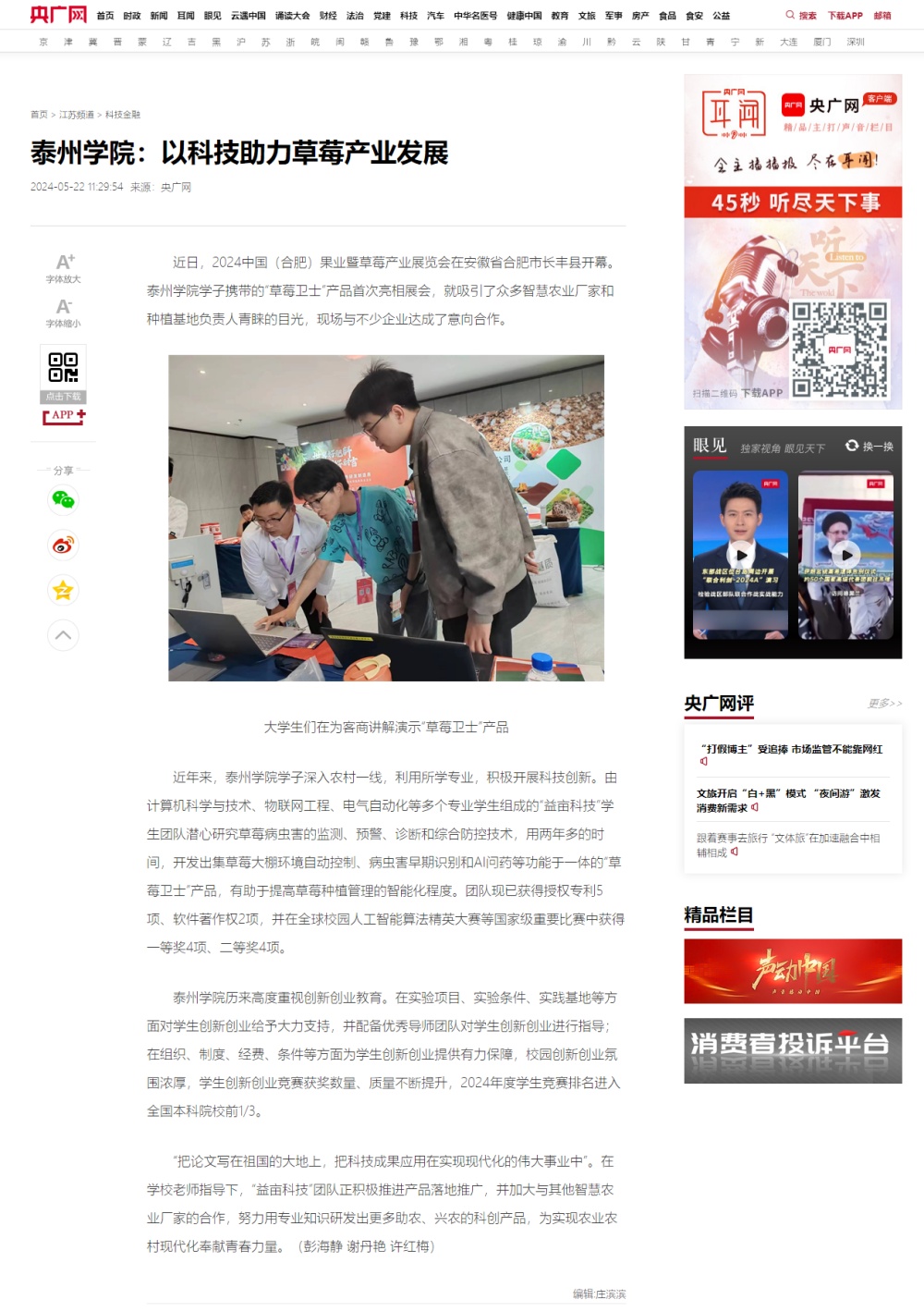 2024年5月22日,《人民数字联播网》《央广网》分别报道米兰官网以科技助力草莓产业发展。