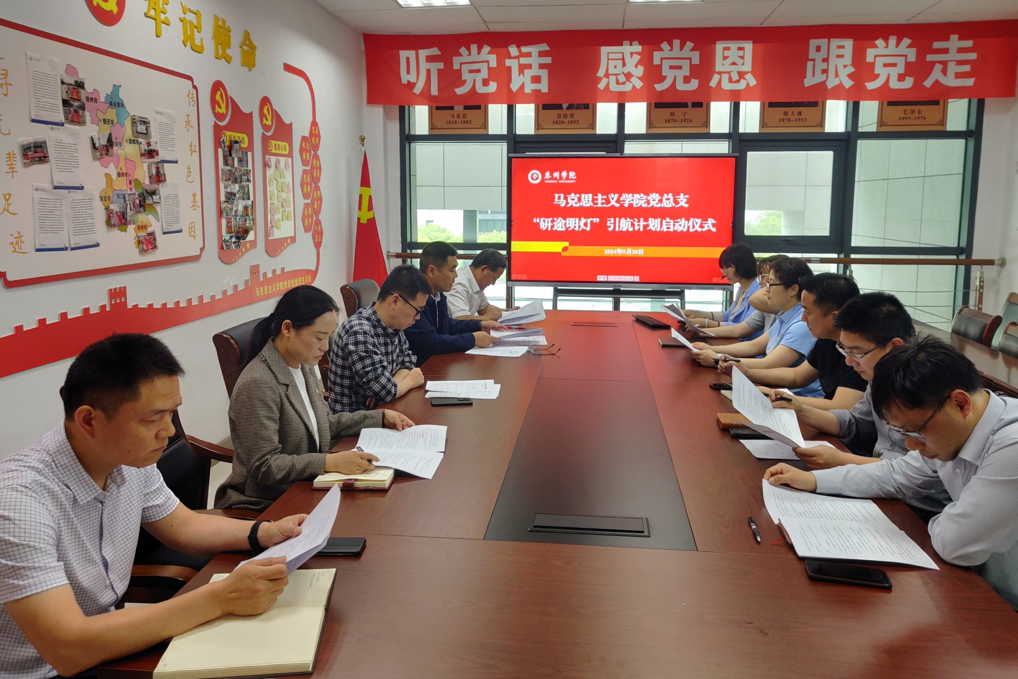 为贯彻落实立德树人根本任务,充分发挥基层党组织战斗堡垒作用和党员教师先锋模范作用,扎实推进考研工作,提升人才培养质量,5月30日,马克思主义学院党总支在D2301会议室举办“研途明灯”引航计划启动仪式。教务处、学工处负责人,二级学院学工书记代表,马克思主义学院负责人及支部书记,考研学生代表等参加活动。