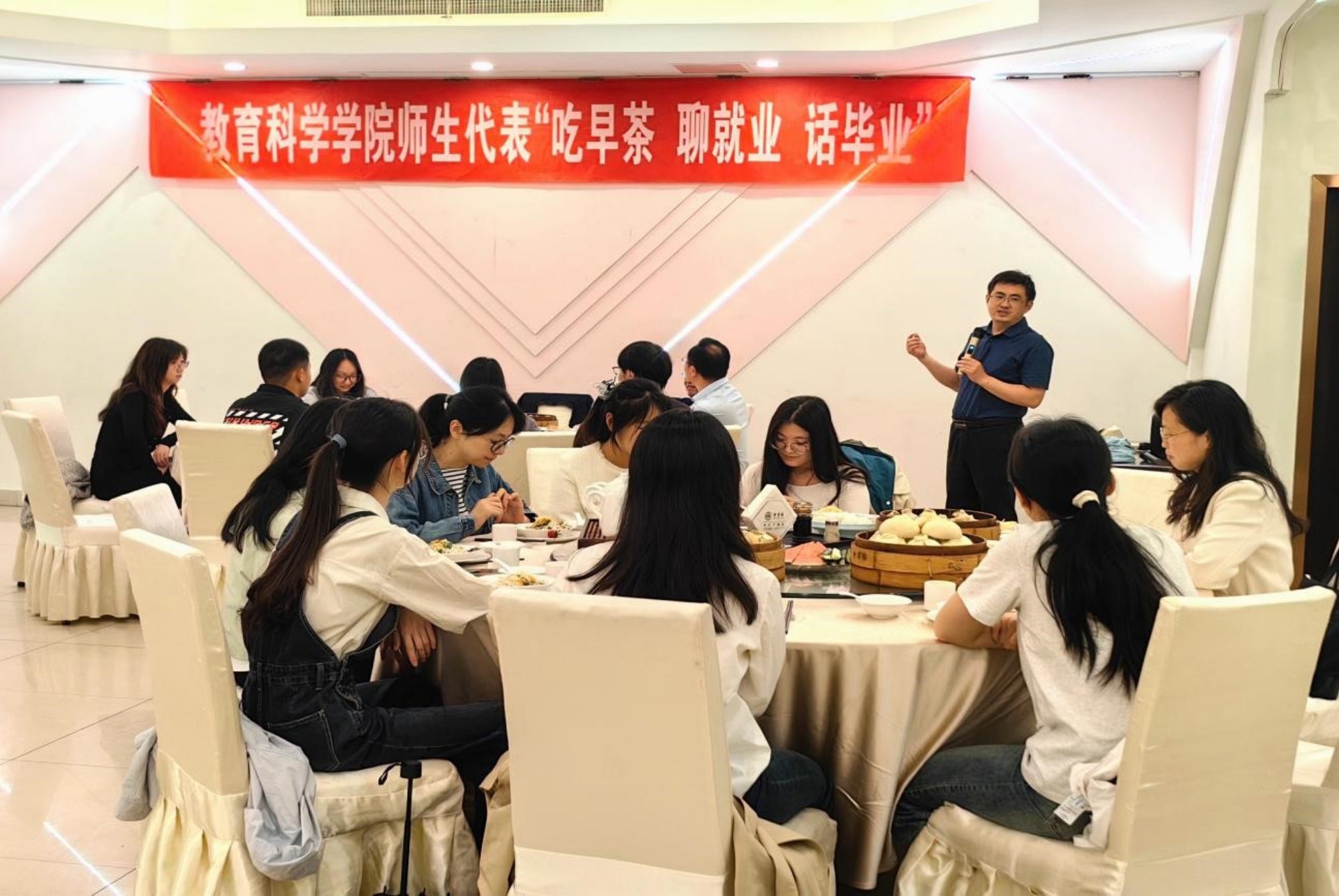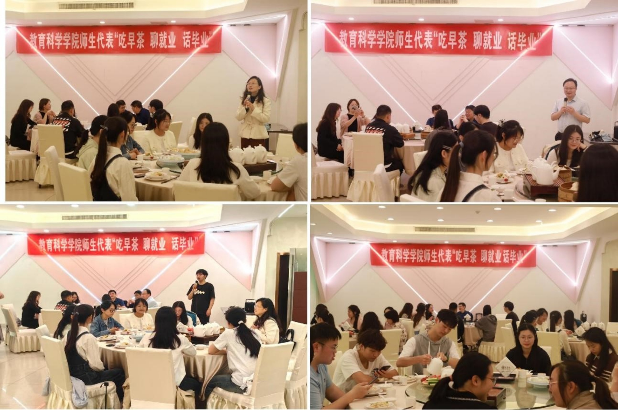 品茗聊就业,茶香话人生。本次早茶座谈会为毕业生们提供了一个学习交流的平台,不仅传播了泰州早茶文化,也加强了师生间的情谊,激励教苑学子们铭记师恩、砥砺前行,不断提升自己的能力和素质,为自己的职业生涯画上精彩绚烂的一笔。