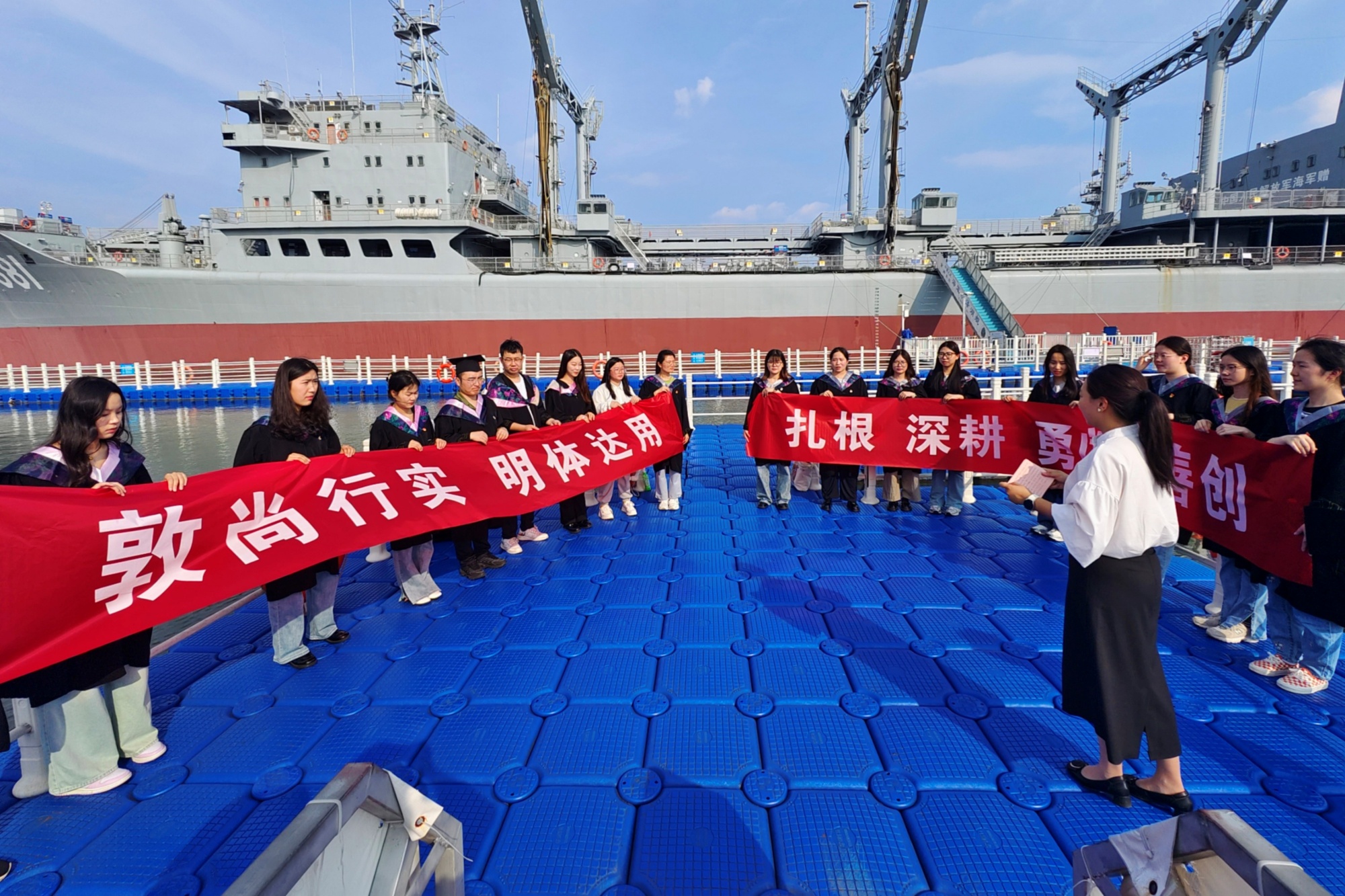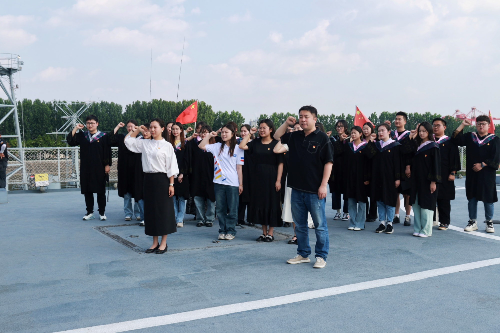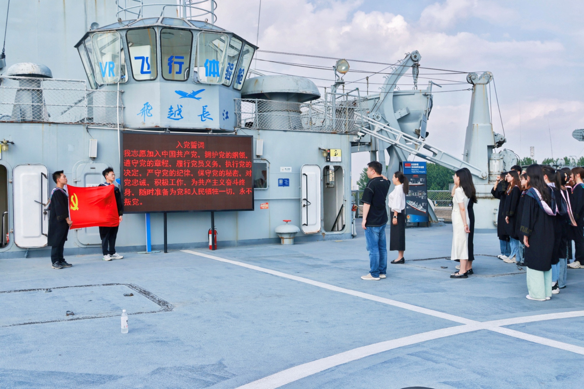 在参观海军文化公园过程中,师生近距离接触海军舰艇,全面了解海军官兵在舰艇上的工作生活情况,切实感受“听党指挥忠于党、能打胜仗打硬仗、作风优良为人民、爱舰爱岛爱海洋”的人民海军精神。数理学院学工党支部书记、“静待花开”铸魂育人工作室主持人庞静为毕业生党员上党课。她结合海军文化和历史,强调了党员的责任与使命,鼓励毕业生党员始终坚定信仰信念,牢记“敦尚行实,明体达用”的校训和“扎根、深耕、勇闯、善创”的泰院精神,发挥党员的先锋模范作用,勇于担当,为社会发展贡献自己的力量。美术学院学工党支部书记金韵结合实际,详细讲解了党的六大纪律,让毕业生党员对党纪有了更加全面和系统的认识。她鼓励毕业生党员在未来的工作和生活中,以党纪为镜,不断加强自身修养,规范自身言行。