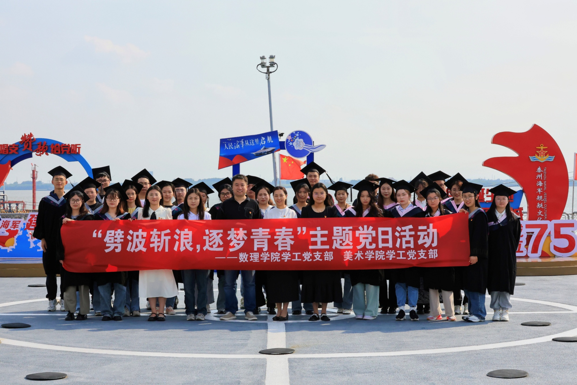 6月6日下午,数理学院联合美术学院组织30余名毕业生党员赴泰州市海军文化公园开展“劈波斩浪,逐梦青春”主题党日活动。本次活动由“静待花开”铸魂育人工作室承办。