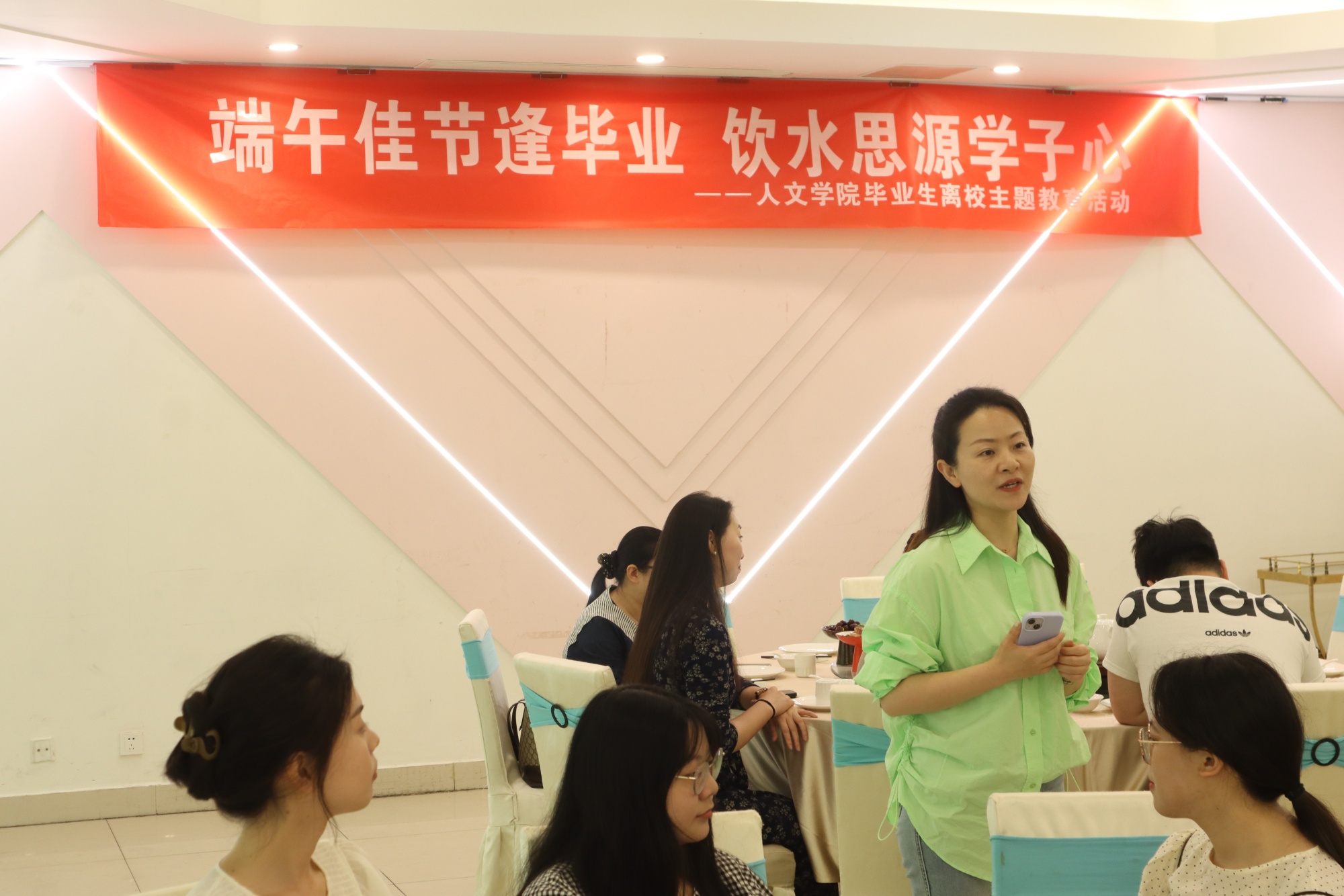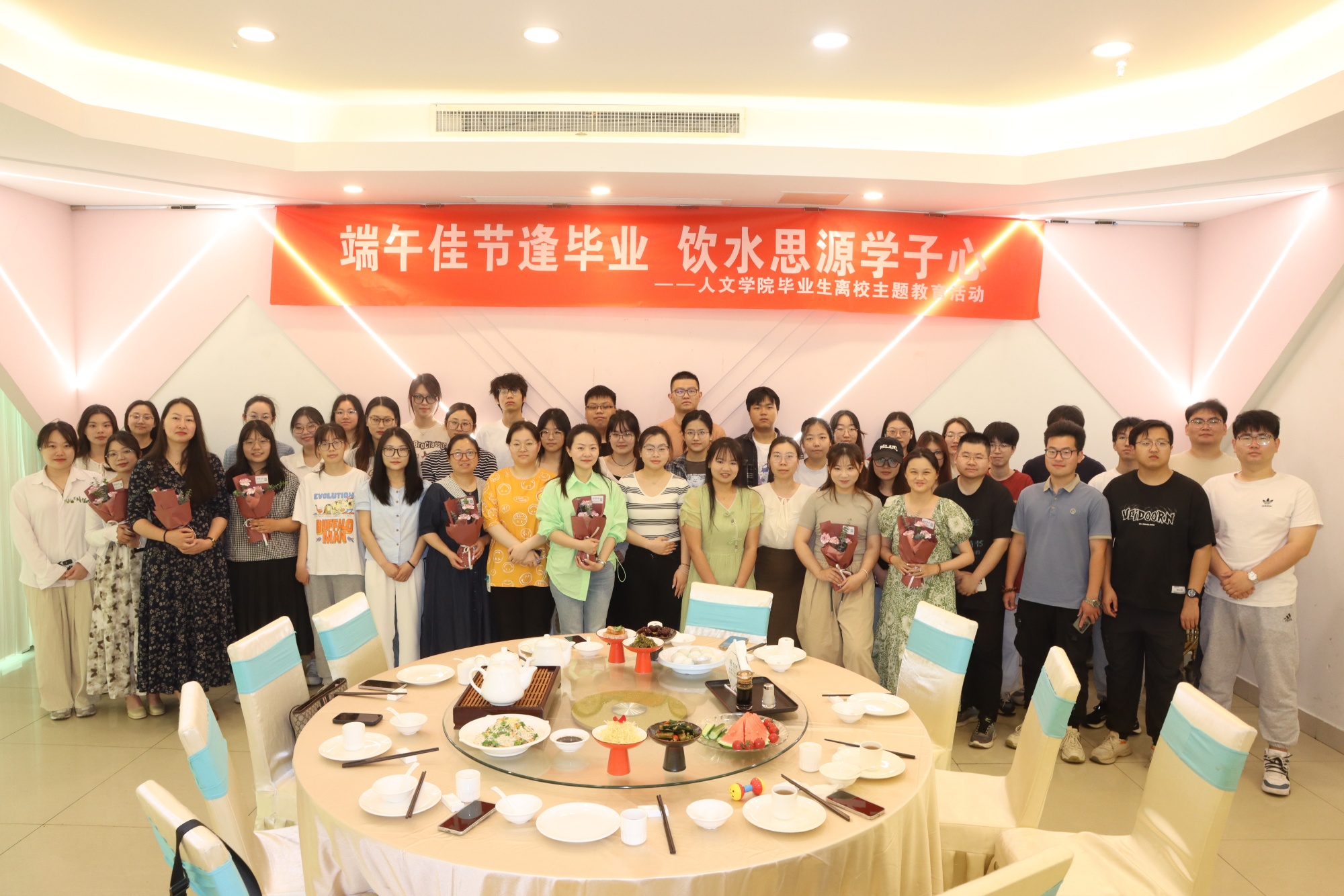 粽香四溢,离愁点点,6月10日上午,人文学院举办“端午佳节逢毕业,饮水思源学子心”毕业离校感恩主题教育活动。人文学院党总支副书记侯维娜、副院长官小燕、辅导员、班主任和2024届毕业生代表共品泰州经典早茶,叙师生之情谊,话同窗之点滴。