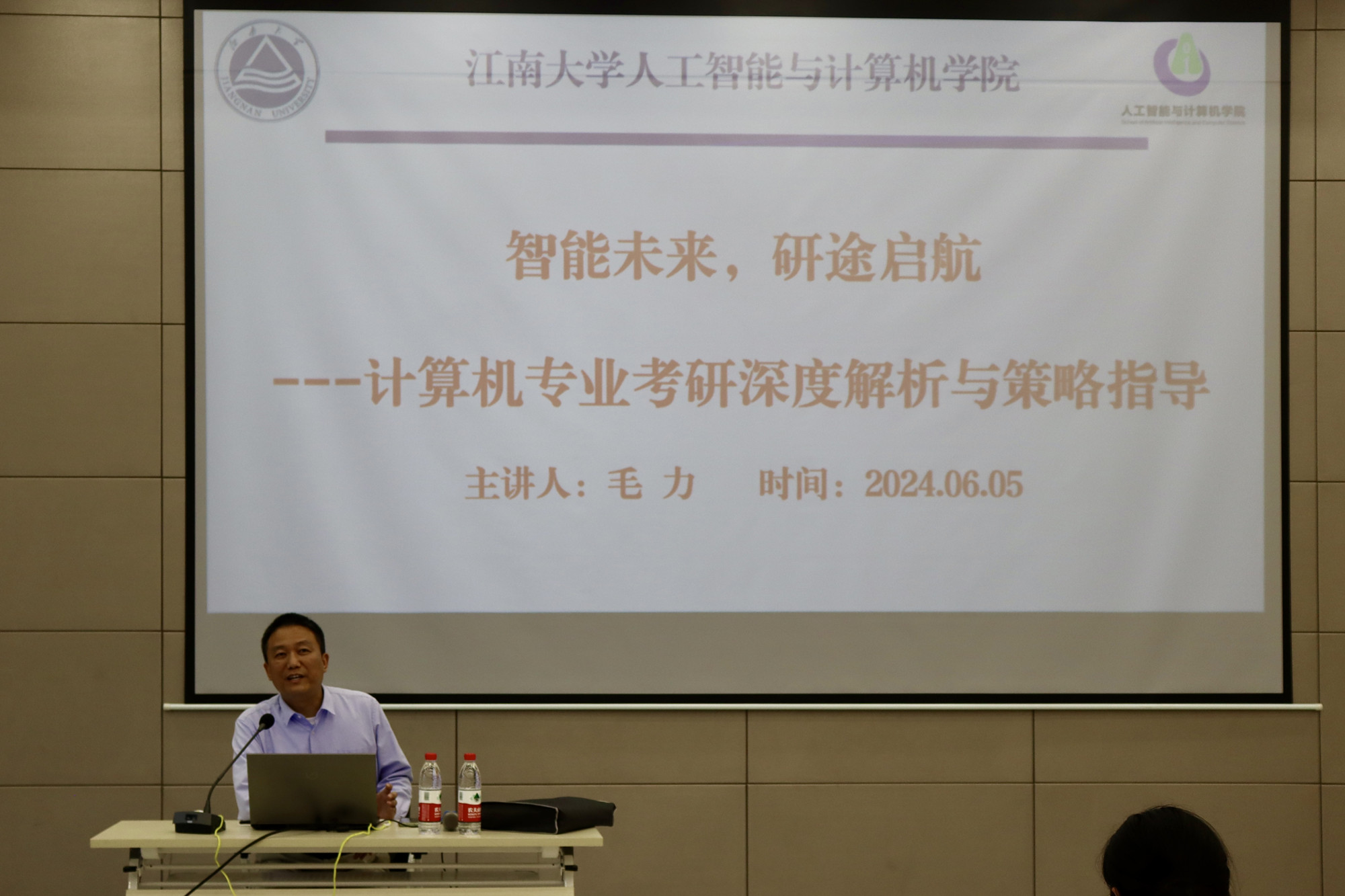 为进一步帮助2025届考研学生明确学习目标、科学精准备考,6月5日下午,信息工程学院邀请江南大学人工智能与计算机学院毛力教授,在胡瑗讲堂E1703举行了以“智能未来,研途启航——计算机专业考研深度解析与策略指导”为题的指导讲座。2025届意向考研学生参加了本次讲座。