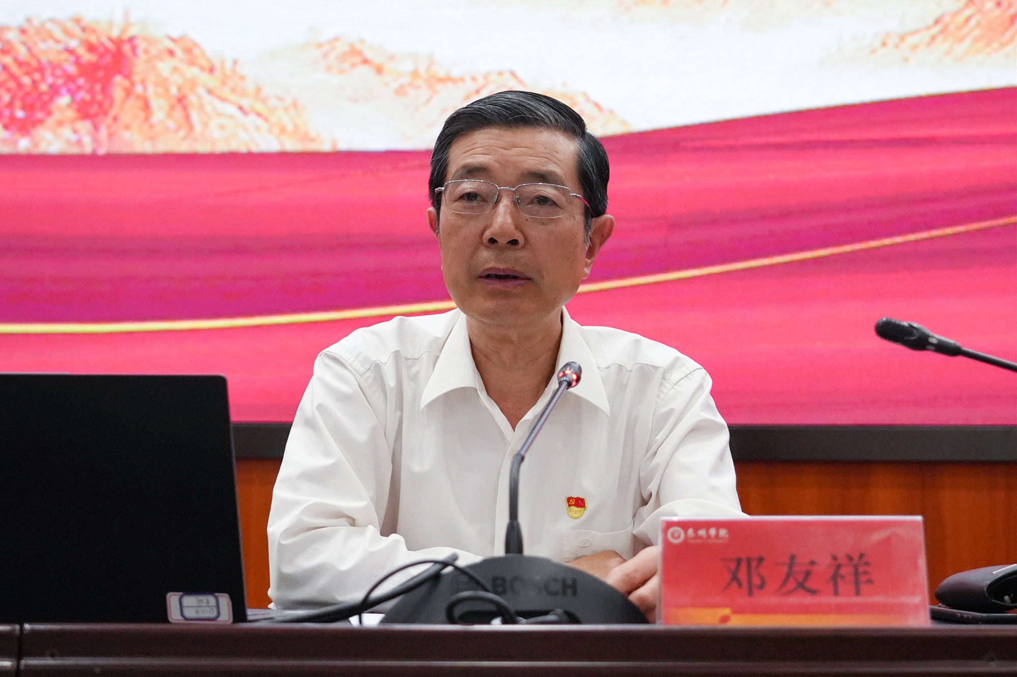 6月12日,校党委副书记邓友祥为党员干部代表讲党纪学习教育专题党课。