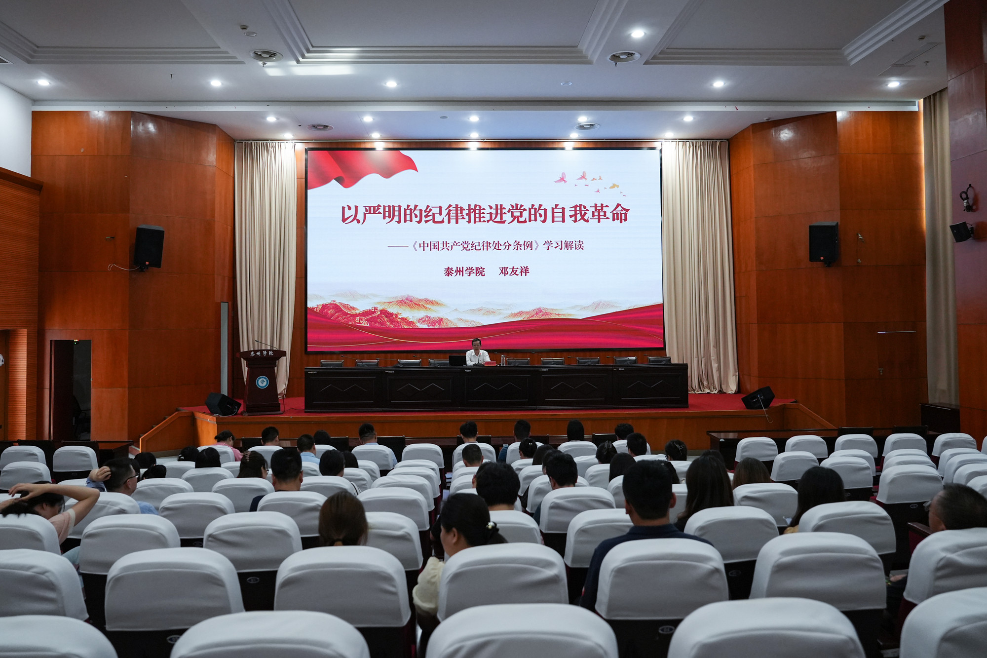 邓友祥以《以严明的纪律推进党的自我革命》为题,从深刻认识纪律严明的重大意义、准确把握《条例》修订的主要内容、切实抓好《条例》的学习贯彻等三个方面进行讲授,举例生动、内容详实、说理透彻,进一步增强了党员干部遵守党的纪律和规矩的自觉性和坚定性。