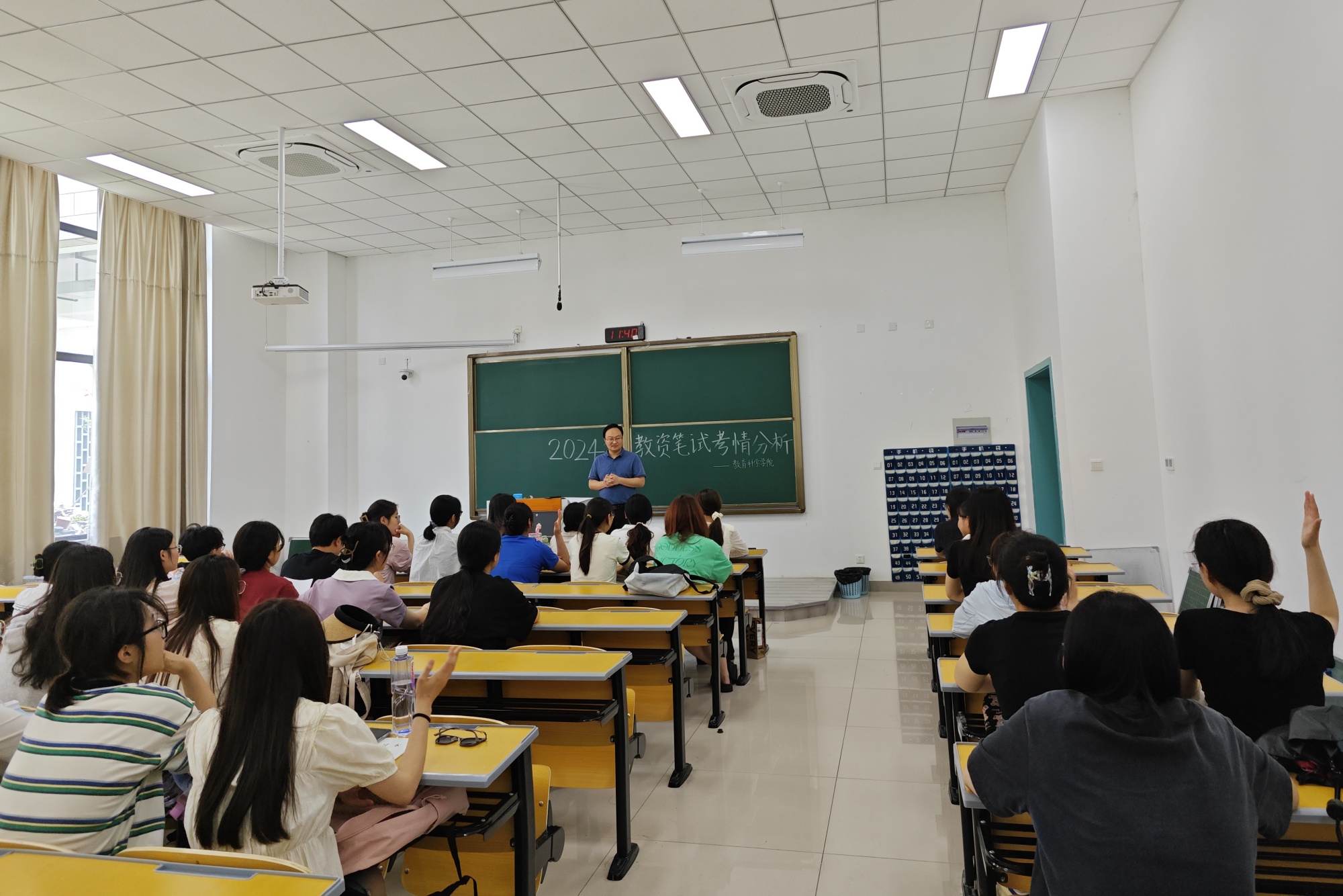 小学教育组首先进行了赛前动员,就教资笔试、大赛规程、参赛选手产生、比赛内容和权重、暑期集训、往届大赛选手表现等方面进行了解读。之后,参赛选手分语文、数学、英语三个组别进行了模拟授课。同学们准备充分、精神饱满、自信大方,充分展现了新时代师范生的精神面貌和专业功底。在场教师从教学设计、教材研究、教姿教态、课件制作、板书设计等多个方面给出了具体建议与指导,鼓励同学们多思考、多实践,用学生的思维并结合学生身心发展水平设计教学环节,努力通过反思与总结提高自己的教学水平。