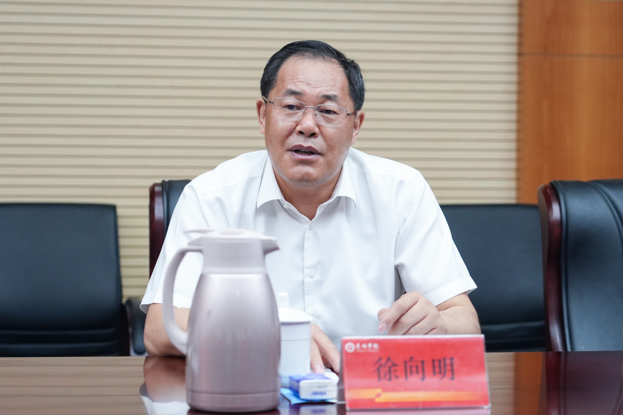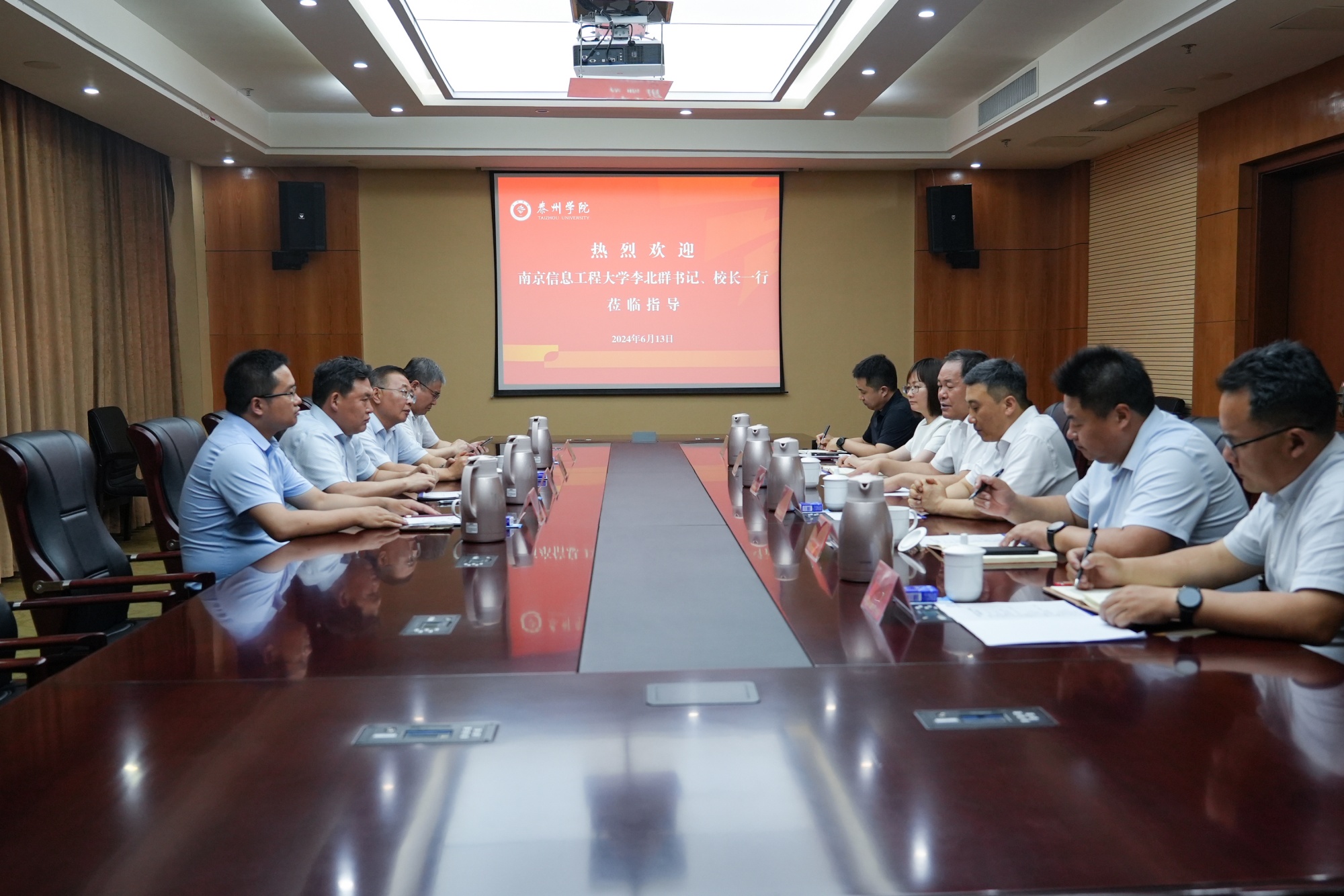 仲夏时节热似火,校际合作情谊长。6月13日下午,南京信息工程大学党委书记、校长李北群一行来访米兰官网。校党委书记徐向明,党委副书记、校长季赛,市委教育工委书记、市教育局局长万永良,党委常委、副校长卜慧芬接待来宾。季赛陪同李北群一行参观师范生实训平台并主持召开座谈会。
