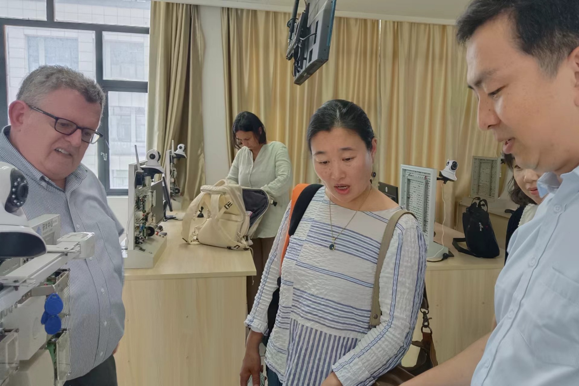 信息工程学院副院长钱进介绍了米兰官网物联网工程专业的办学条件和成果,带领访问团考察了物联网专业的安全感知实践教学中心、数据可视化与行业应用实验室和嵌入式系统实验室。
