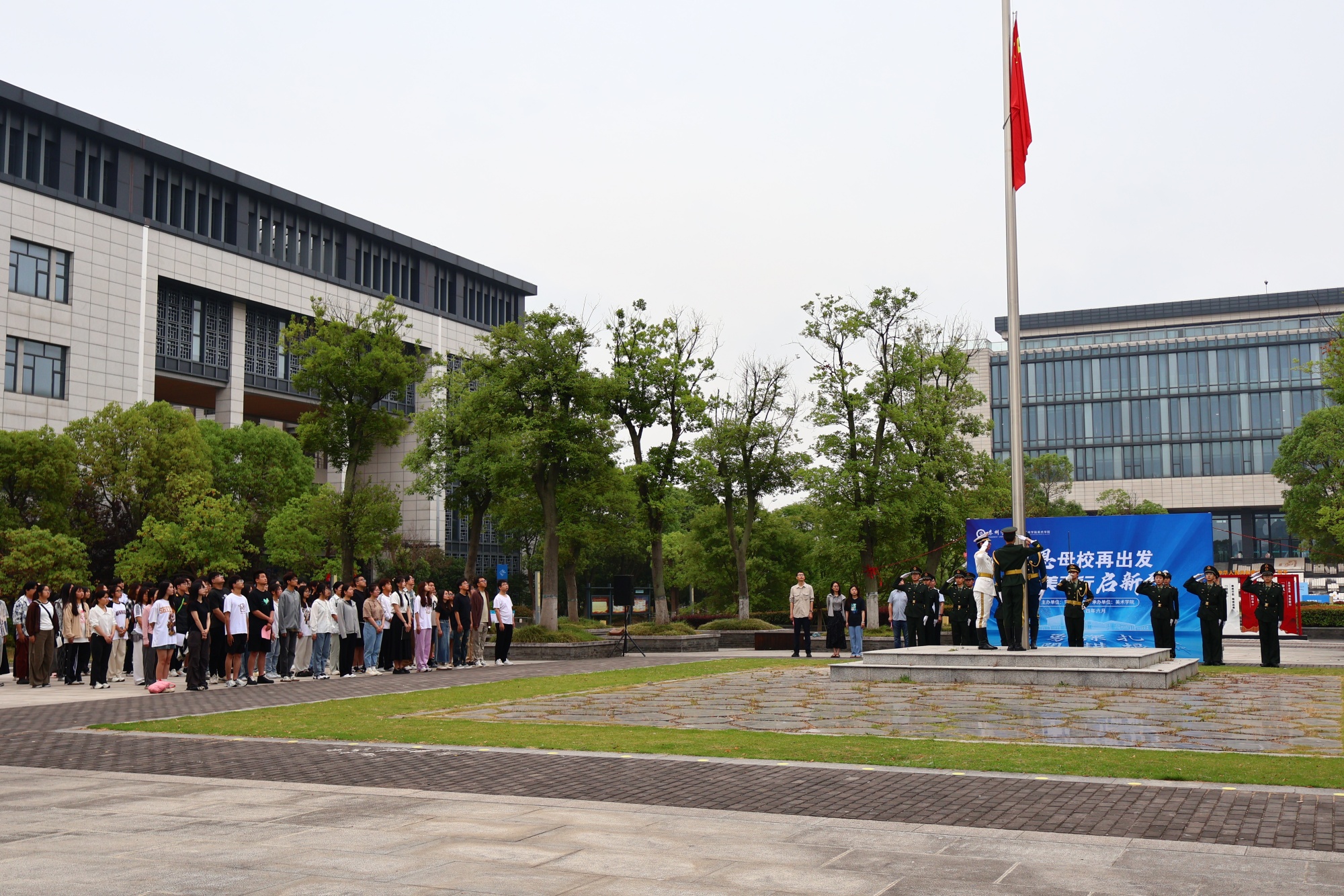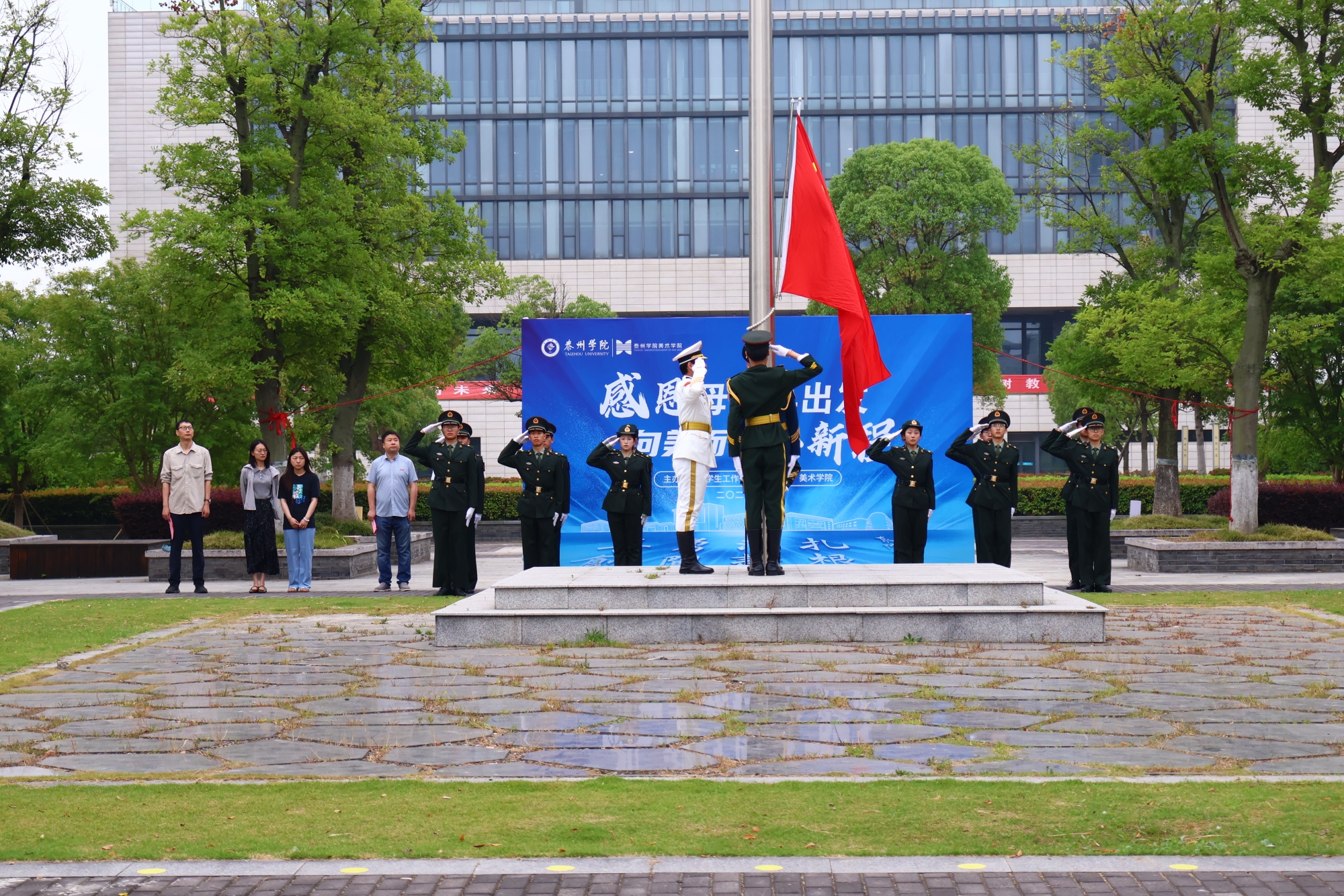 6月17日上午,由校党委学生工作部主办、美术学院承办的“感恩母校再出发,向美而行启新程”主题升旗仪式在胡瑗广场举行。美术学院党总支书记吴新林、党总支副书记于晶晶、全体辅导员、学生会代表和2024届毕业生参加仪式。