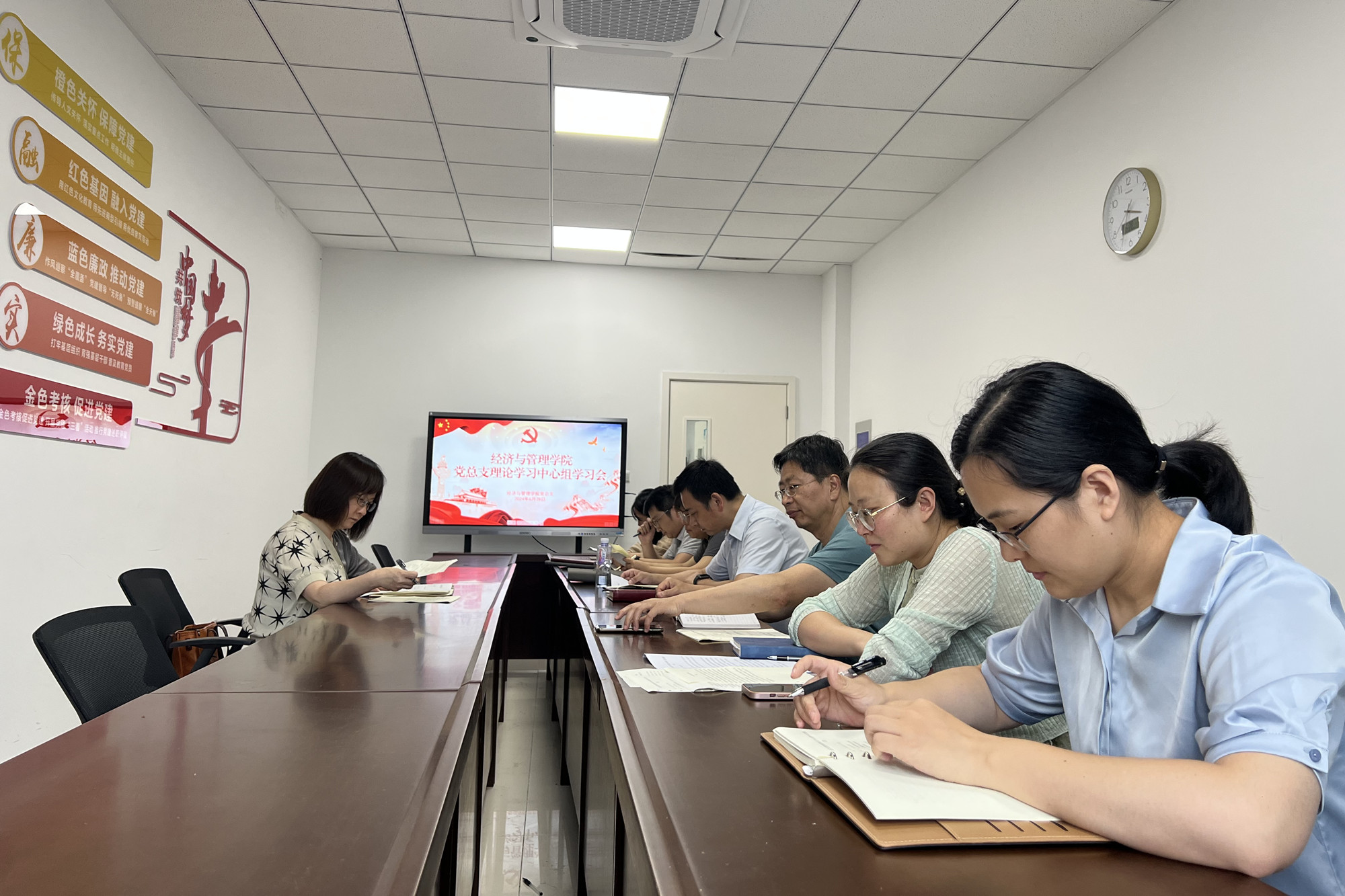 6月28日上午,经济与管理学院党总支理论学习中心组组织集中学习,校党委常委、副校长卜慧芬到会巡学旁听。会议由党总支书记黄彬主持。
