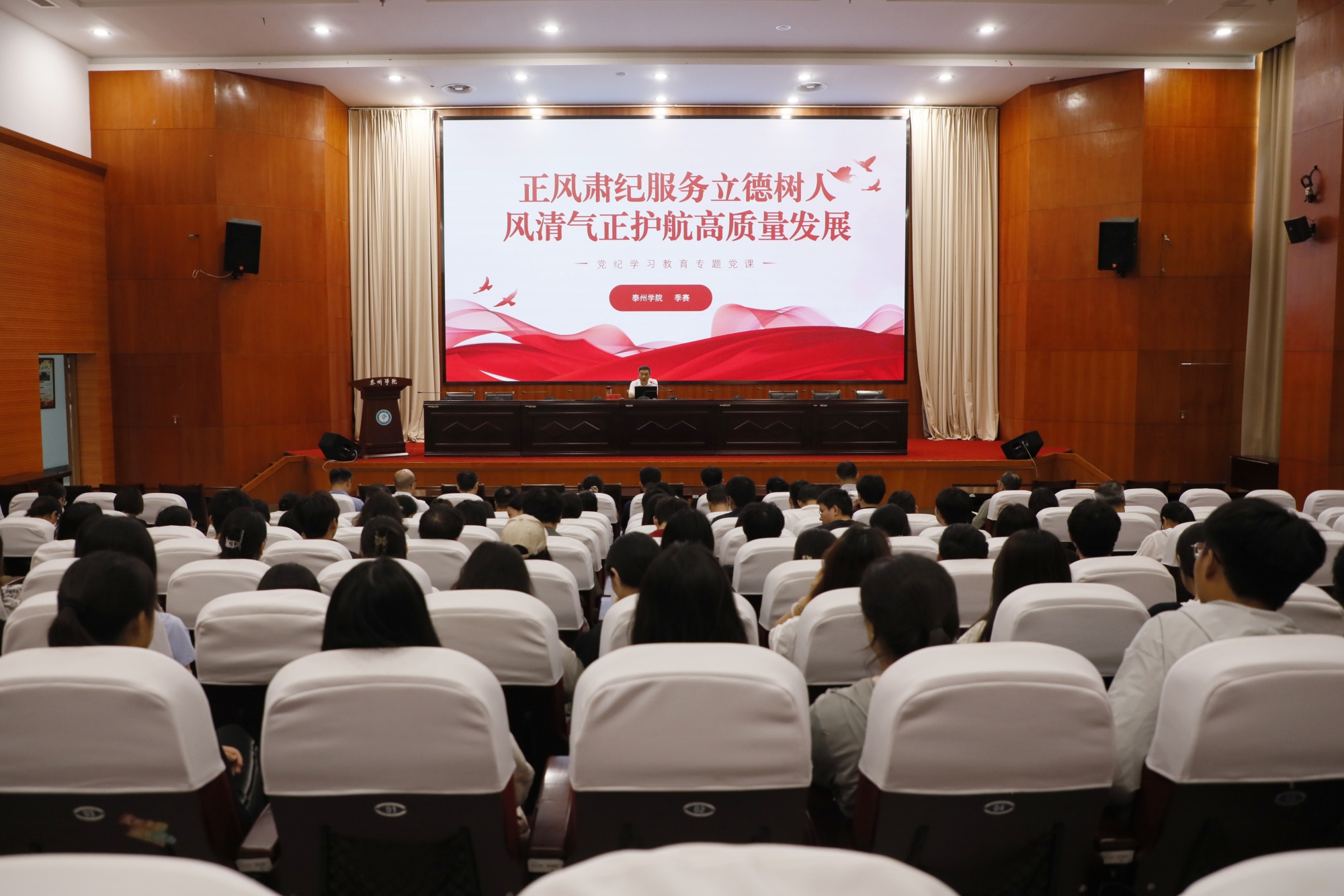 随后,季赛围绕“正风肃纪服务立德树人”,从理论和实践两个层面进行了讲解。他通过详细解读“六大纪律”的内涵,分享高校违法违规典型案例等,指出正风肃纪不仅是对党员干部的要求,也是全体师生应当共同遵循的行为准则。他引导广大师生党员坚定理想信念,自觉抵制不正之风,积极营造健康向上的校园文化生态。