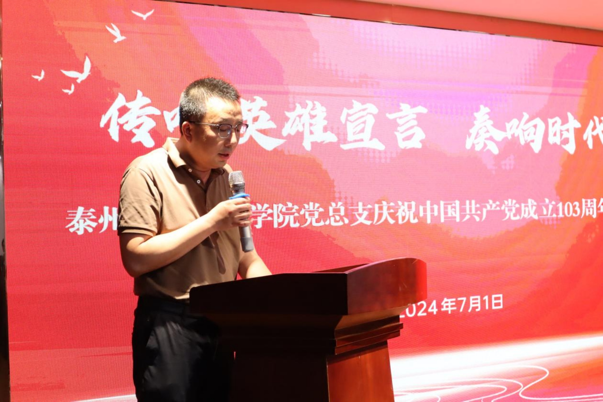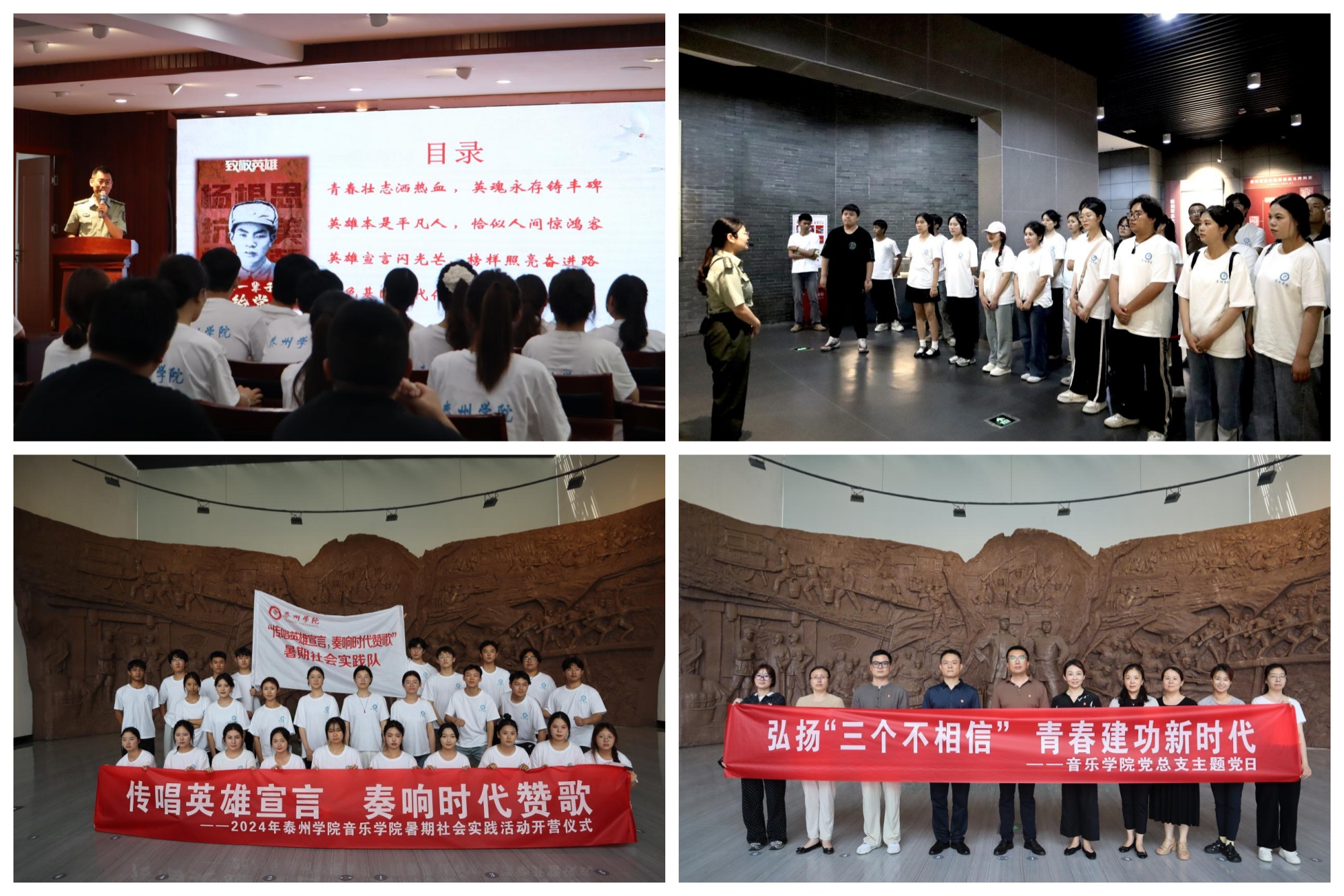 7月1日,在庆祝中国共产党成立103周年之际,为引导和帮助青年学生在社会课堂中受教育、长才干、作贡献,争做有理想、敢担当、能吃苦、肯奋斗的新时代好青年,音乐学院党总支全体党员教师和暑期社会实践队员近50人,走进杨根思烈士陵园和新四军黄桥战役纪念馆,以“传唱英雄宣言,奏响时代赞歌”为主题,举行2024年暑期社会实践活动开营仪式。