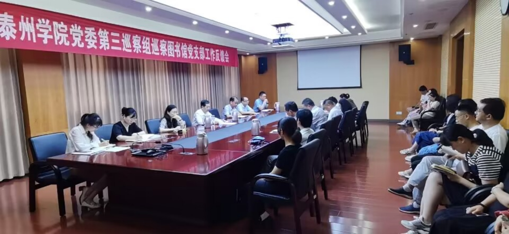 根据学校党委安排部署,5月至6月,第三届党委第三轮校内巡察采取“常规+专项”相结合的方式,对1个二级党组织和5个机关党委所属党支部开展常规巡察,并同步组织开展专项巡察。6月24日,校党委巡察工作领导小组召开会议,审议并通过常规巡察组的巡察工作情况报告,并对整改工作提出要求。6月28日至7月2日,各常规巡察组分别召开了巡察意见反馈会。