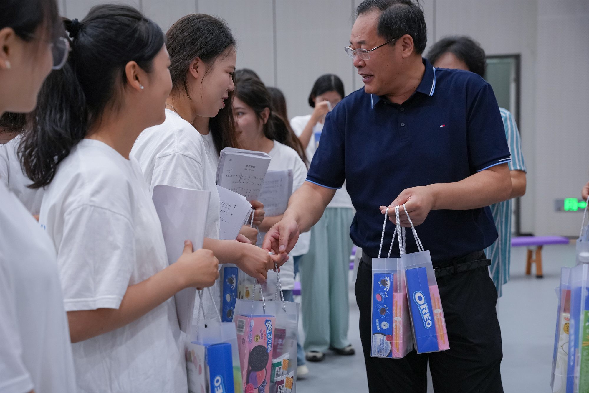 在实践活动现场,徐向明与实践队队员进行了交流,详细询问了当前剧目排练的进度、面临的困难等,对大家不畏酷暑、躬身实践的精神给予充分肯定。他表示,暑期社会实践是大学生接触社会、了解社会、服务社会的有效形式,勉励同学们要在实践中磨炼、在实践中成长,用实际行动诠释泰院学子的责任与担当。他希望同学们要坚定理想信念,勇于担当作为,在奉献社会、服务人民中,进一步坚定不移听党话、跟党走;要将专业知识与社会实践相结合,以《英雄杨根思》剧目排演为契机,将实践经验转化为终身受用的财富;要树牢安全意识,做好风险防范,始终坚持“安全第一”的原则,确保各项实践活动安全有序开展。随后,徐向明和卜慧芬共同为实践队员送去了慰问礼包。