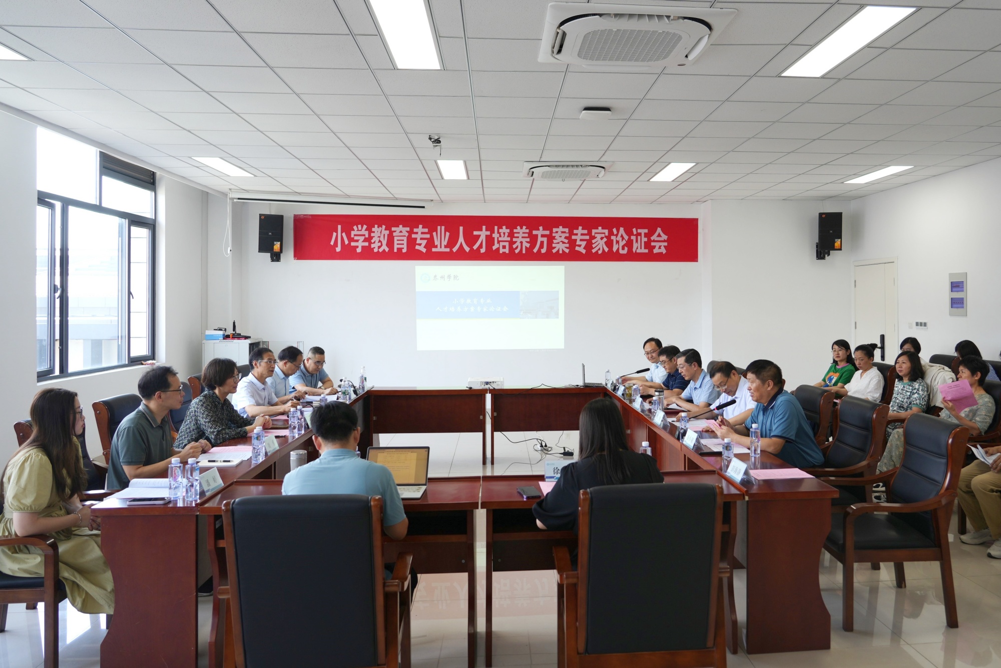为主动适应基础教育现代化改革的整体趋势,深入了解新时代背景下地方教育行政部门、小学等对人才培养的需求,提高人才培养质量,进一步推动小学教育专业人才培养方案的规范化修订工作,7月10日,LETOU国际米兰官网在G3502会议室召开小学教育专业人才培养方案专家论证会。论证会邀请扬州大学基础教育研究所所长潘洪建、泰州市教育局副局长许志勤、姜堰区教师发展中心主任周勇、泰州市海光中心小学校长窦平、姜堰区实验小学副校长沈勇五位校外专家莅临指导,同时邀请本专业2020届毕业生、海安市白甸镇中心小学潘婷作为毕业生代表参会。校党委副书记邓友祥、师范教育中心主任蔡俊、教务处副处长彭海静,学院领导仲宁、潘小明、朱以财、徐莹莹,小学教育系骨干教师等近30人参加了论证会。论证会由LETOU国际米兰官网院长潘小明教授主持。