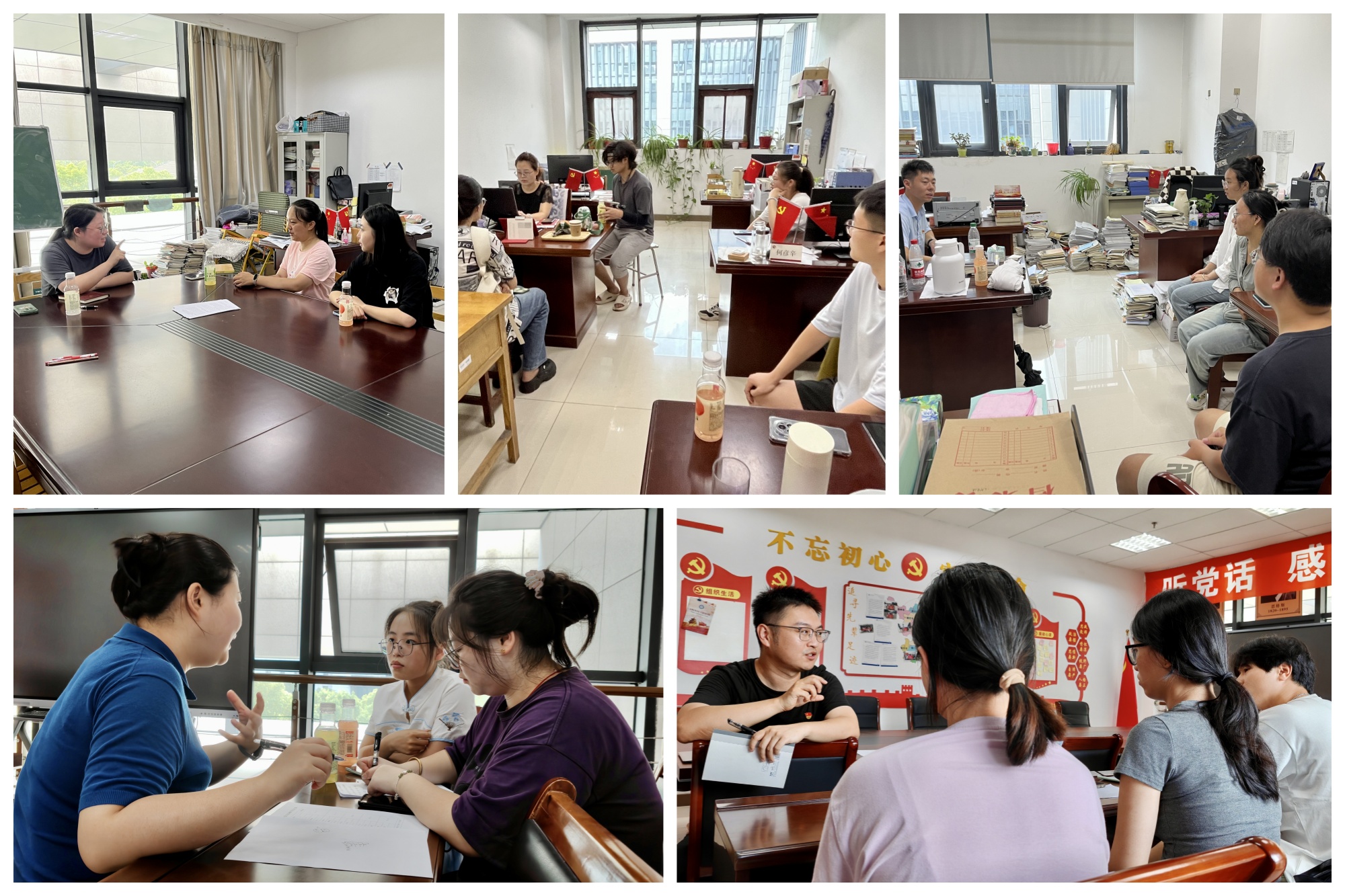 在辅导环节,刘玲、刘欢、钱正元、周顺玲、张璇等老师结合自身考研考博经历和学生关心的焦点热点问题,从关注时事政治、讲求复习方法、理清脉络体系、培养思维方法、协调身心健康、掌握解题技巧、健全支持系统、锤炼意志品质等角度进行了面对面的交流和辅导。活动结束后,来自人文学院的2021级知识产权班周月阳说:“马克思主义学院党员教师顶着炎日酷暑,放弃休假来校为我们服务,令我们感动和敬佩。看到这些曾经教过我们,非常熟悉、非常喜欢的老师,感觉特别亲切。他们的到来,既给我们指点了知识迷津,也让我们抛开许多思想包袱,注入了信心和力量。真的非常感谢!”