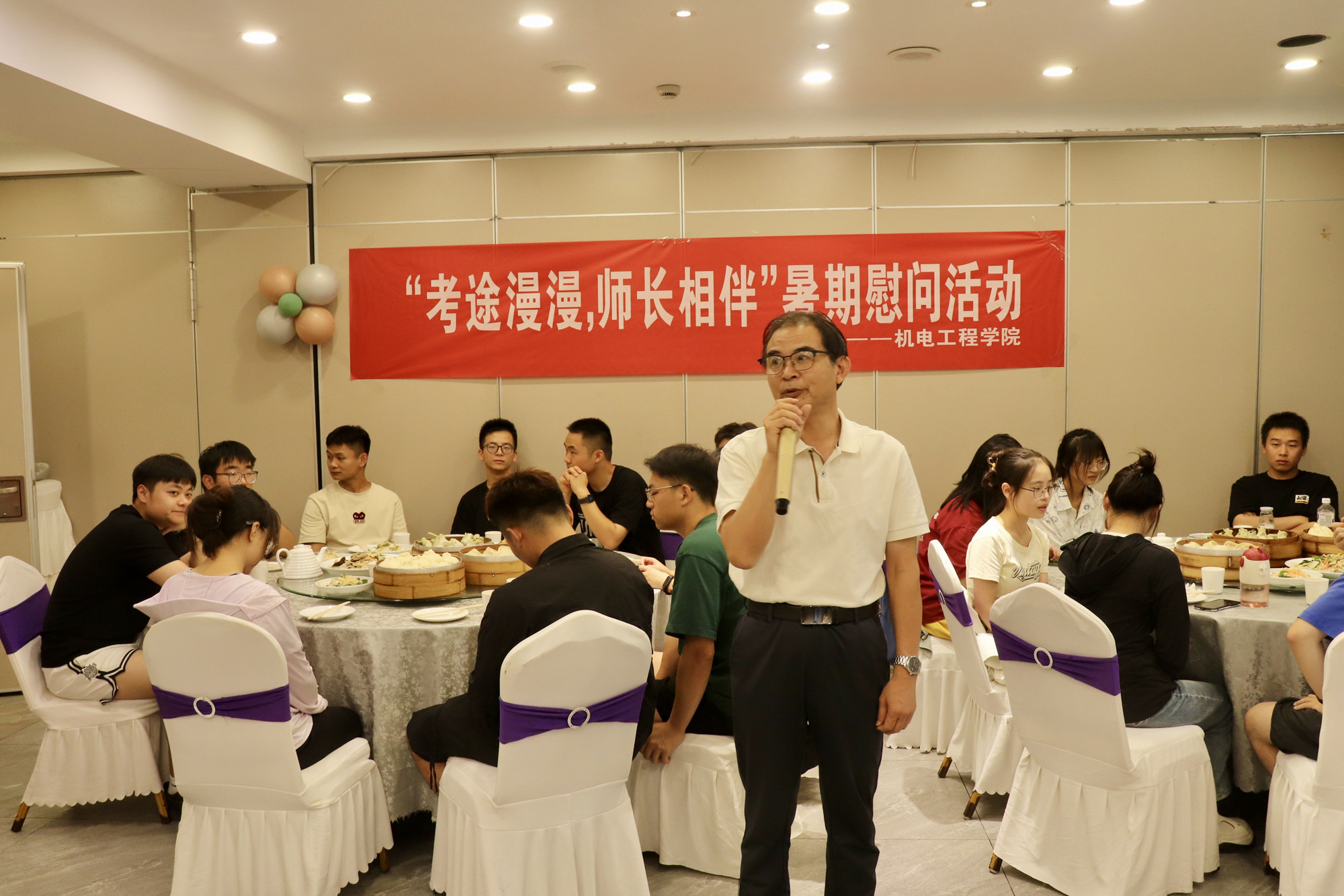 炎炎夏日送清凉,浓浓关怀沁人心。为全面了解暑期留校备考学子们的学习与生活动态,激励考研、考公学子把握备考黄金期,保持学习热情,8月10日,机电工程学院举办早茶会活动。院长许胜,党总支副书记、副院长董卫华,副院长周银和全体辅导员参加活动。