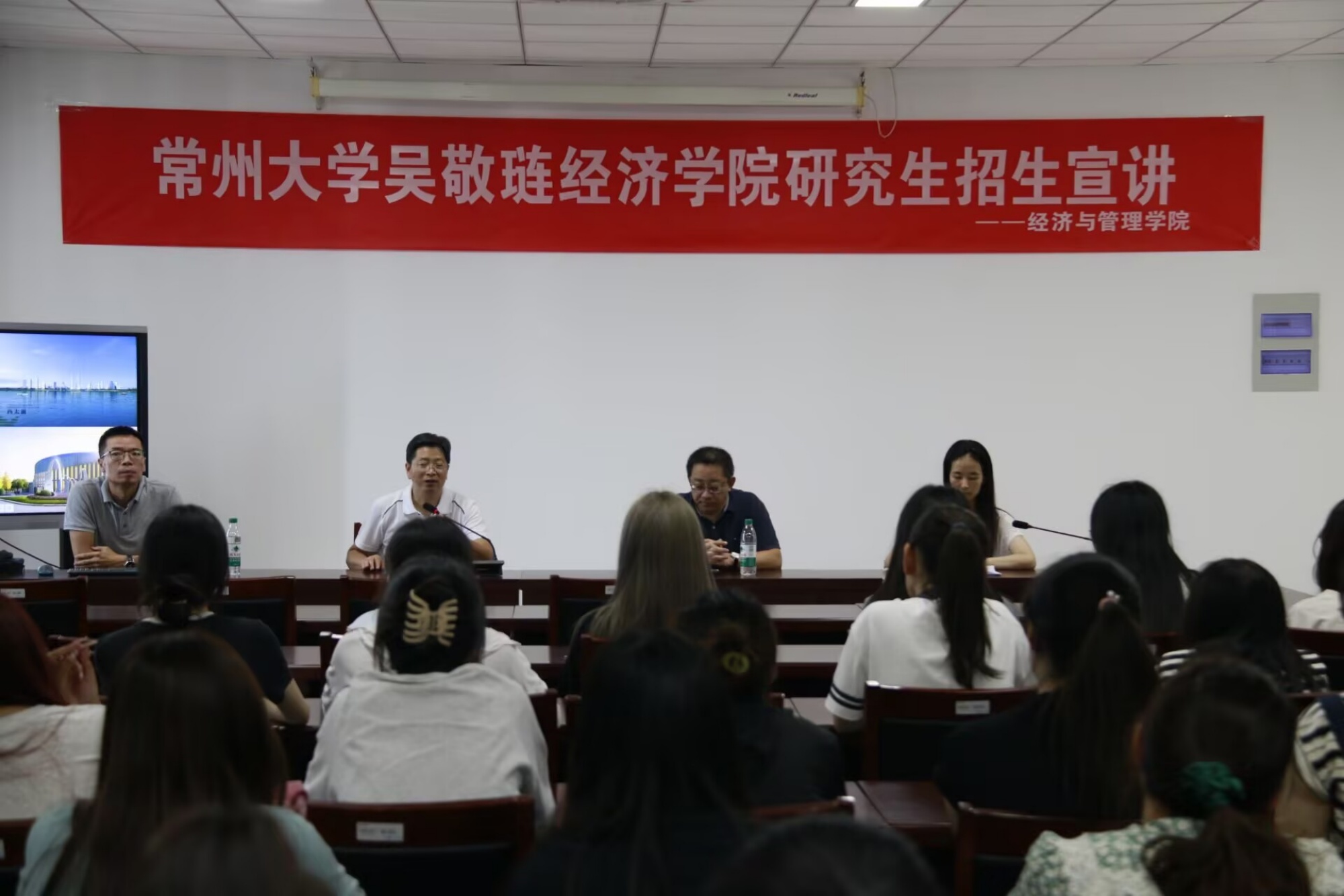 为推动学院升学工作质量迈向新台阶,9月4日下午,经济与管理学院邀请常州大学吴敬琏经济学院院长姜国刚等人莅临学校,面向2021至2023级学生开展研究生招生宣讲。经济与管理学院院长朱军以及师生代表共同参与此次活动。