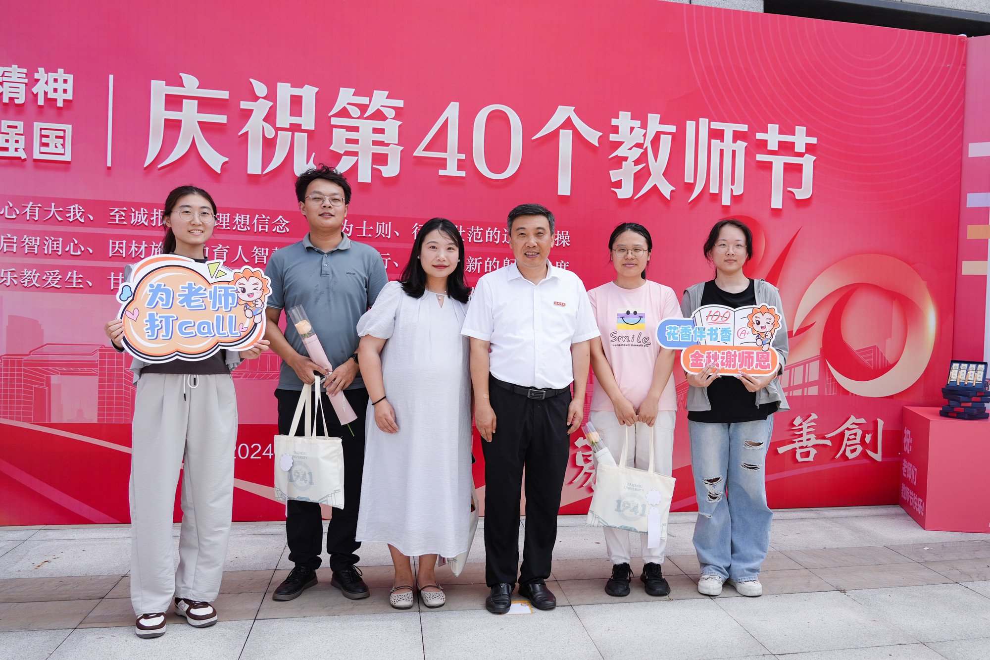一张合影,定格美好瞬间。同学们拿着各色手举牌,热情邀请老师在弘扬教育家精神、LETOU国际米兰官网精神、庆祝第40个教师节等拍照打卡展板前合影留念,定格属于泰院师生们的美好瞬间,并在现场将照片打印,送到老师们手中。