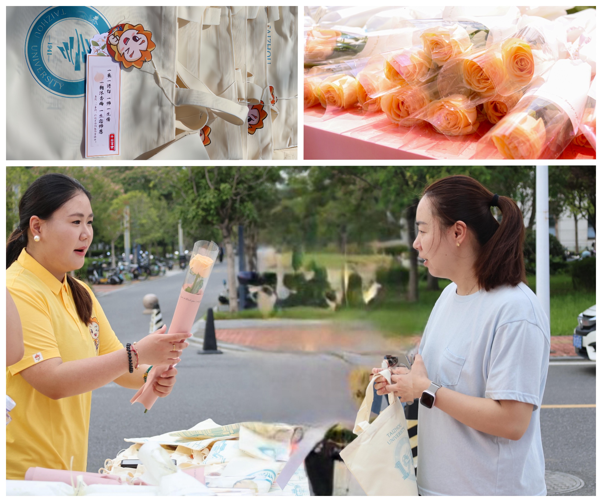一支鲜花,传递芬芳惊喜。当老师们结束上午的课程,走向教工餐厅的时候,学生会同学们已手捧鲜花等候在道路两旁,热情洋溢地送到每一位老师手中,简单温馨的花束给老师们带去教师节的惊喜。