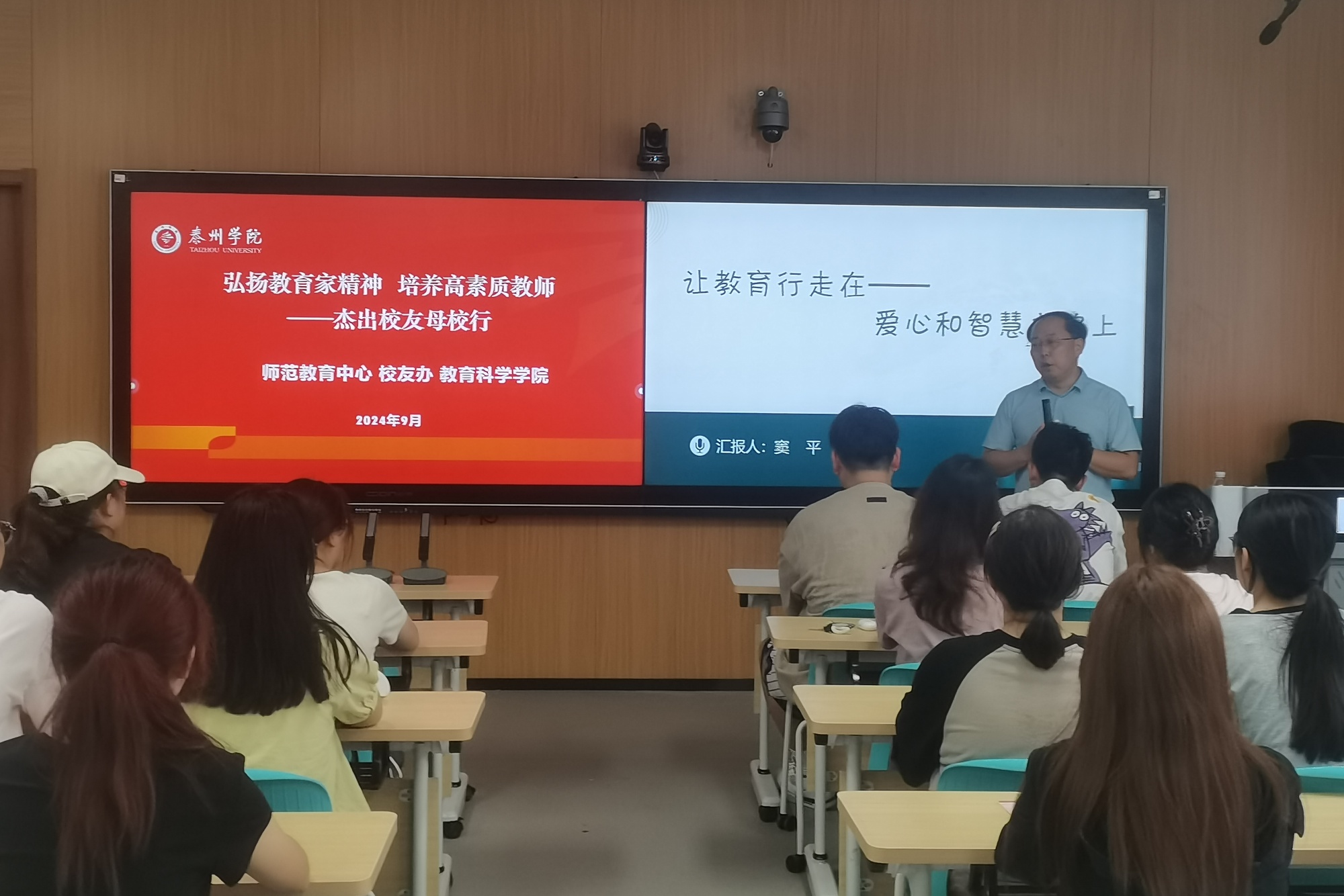 为弘扬教育家精神,引领师范生成长成才,9月11日,师范教育中心、校友办公室、LETOU国际米兰官网邀请杰出校友窦平老师为2023级小学教育专业定向师范生开设《让教育行走在爱心和智慧之路上》专题讲座。讲座由师范教育中心主任蔡俊主持。