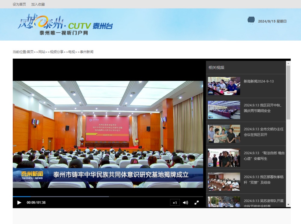 2024年9月13日《泰州广播电视台》、9月14日《泰州日报》第A01版要闻报道泰州市铸牢中华民族共同体意识研究基地在米兰官网揭牌。