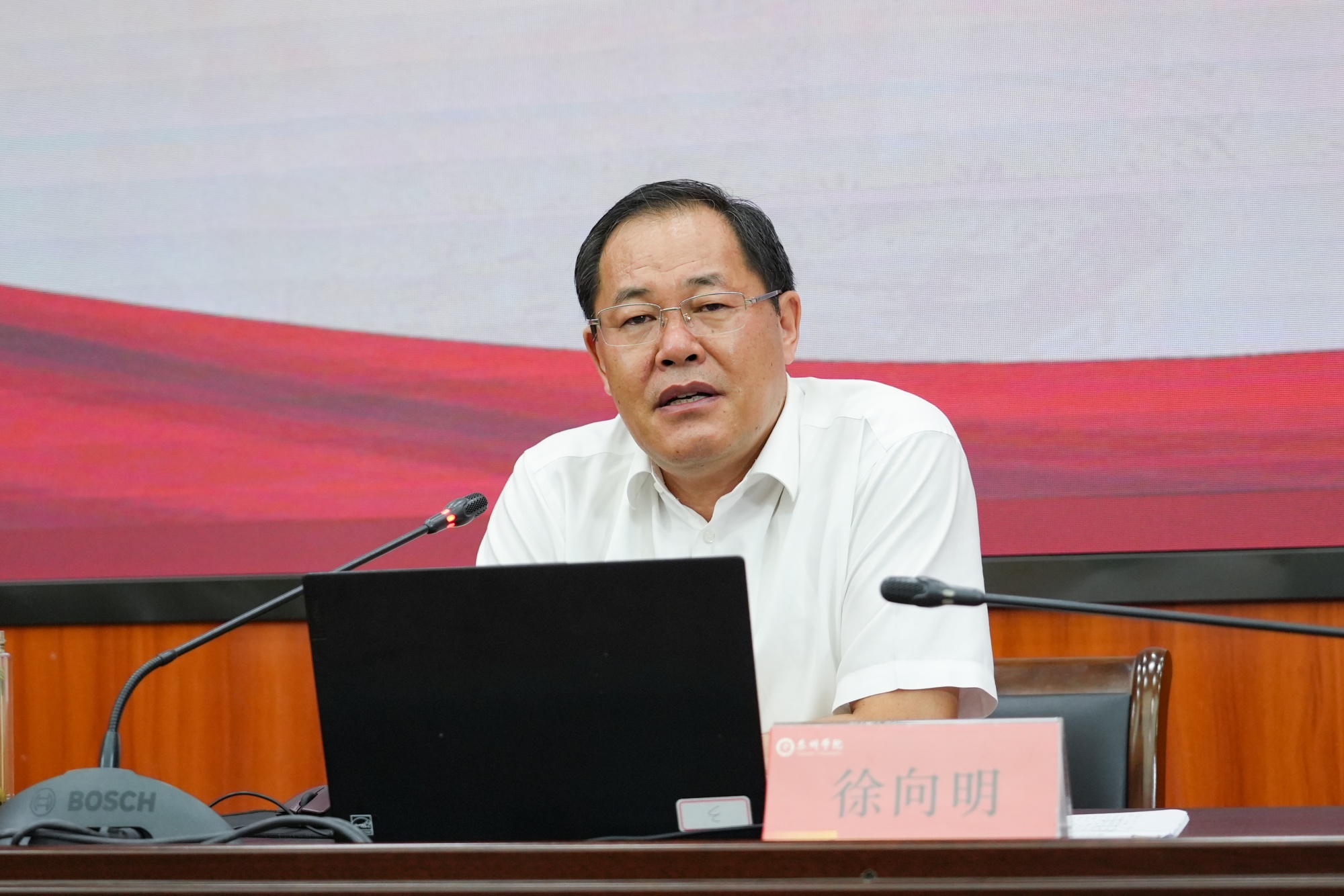 9月19日下午,校党委书记徐向明以《紧扣中国式现代化主题 进一步全面深化改革》为题,为新进师生代表讲授了“书记第一课”。讲座由校党委常委、副校长薛小平主持。