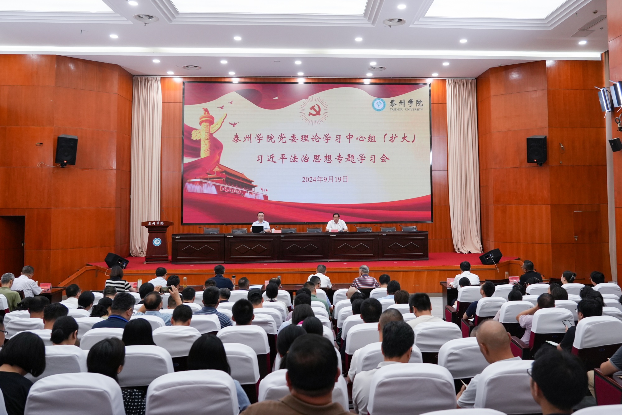 9月19日,校党委理论学习中心组(扩大)专题学习习近平法治思想,听取了中共江苏省委党校杨皖宁副教授围绕习近平法治思想的理论品格、核心要义、科学方法作的专题辅导报告。校党委书记徐向明主持会议。