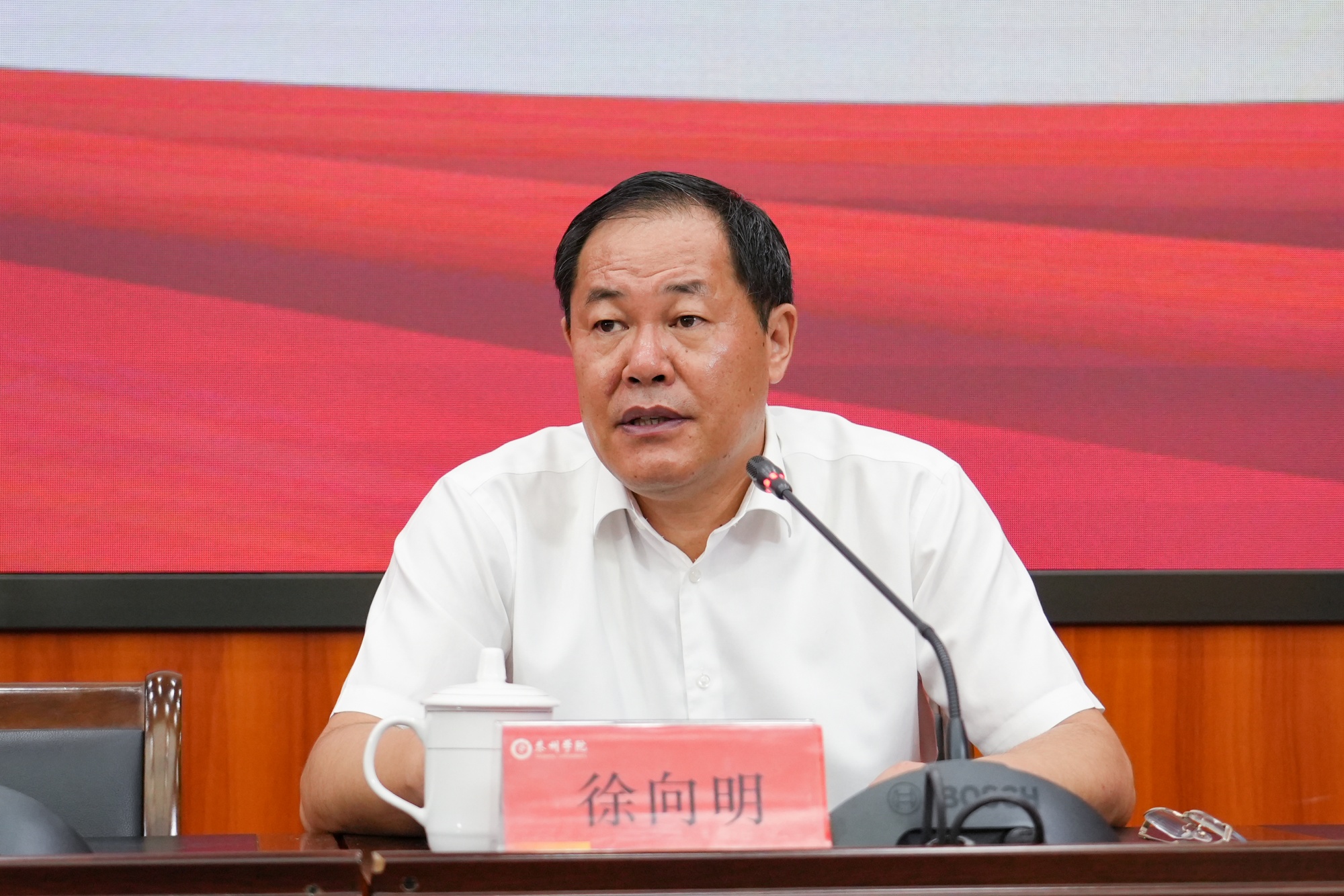 会上,徐向明围绕把学习成效落实在依法治校的具体行动上提出要求:一要牢记“国之大者”,深刻把握习近平法治思想的重大意义和精神实质。结合讲座内容展开思考,重点从法治领域深化对共产党执政规律、社会主义建设规律、人类社会发展规律的认识;二要提高政治站位,力求在学习宣传习近平法治思想上达到新成效。学习出内心“信仰”,更加坚信中国特色社会主义法治道路;宣传出真理“味道”,引导激励干部师生投身全面依法治国实践;实践出深刻“真知”,不断提高办学治校的法治化水平和能力;三要肩负使命担当,不断推动学习贯彻习近平法治思想走深走实。着力做好“强化”文章,推动习近平法治思想教育教学取得新实效;着力做好“深化”文章,推动习近平法治思想研究阐释宣传取得新成果;着力做好“转化”文章,推动新时代全面依法治校拓宽新思路。