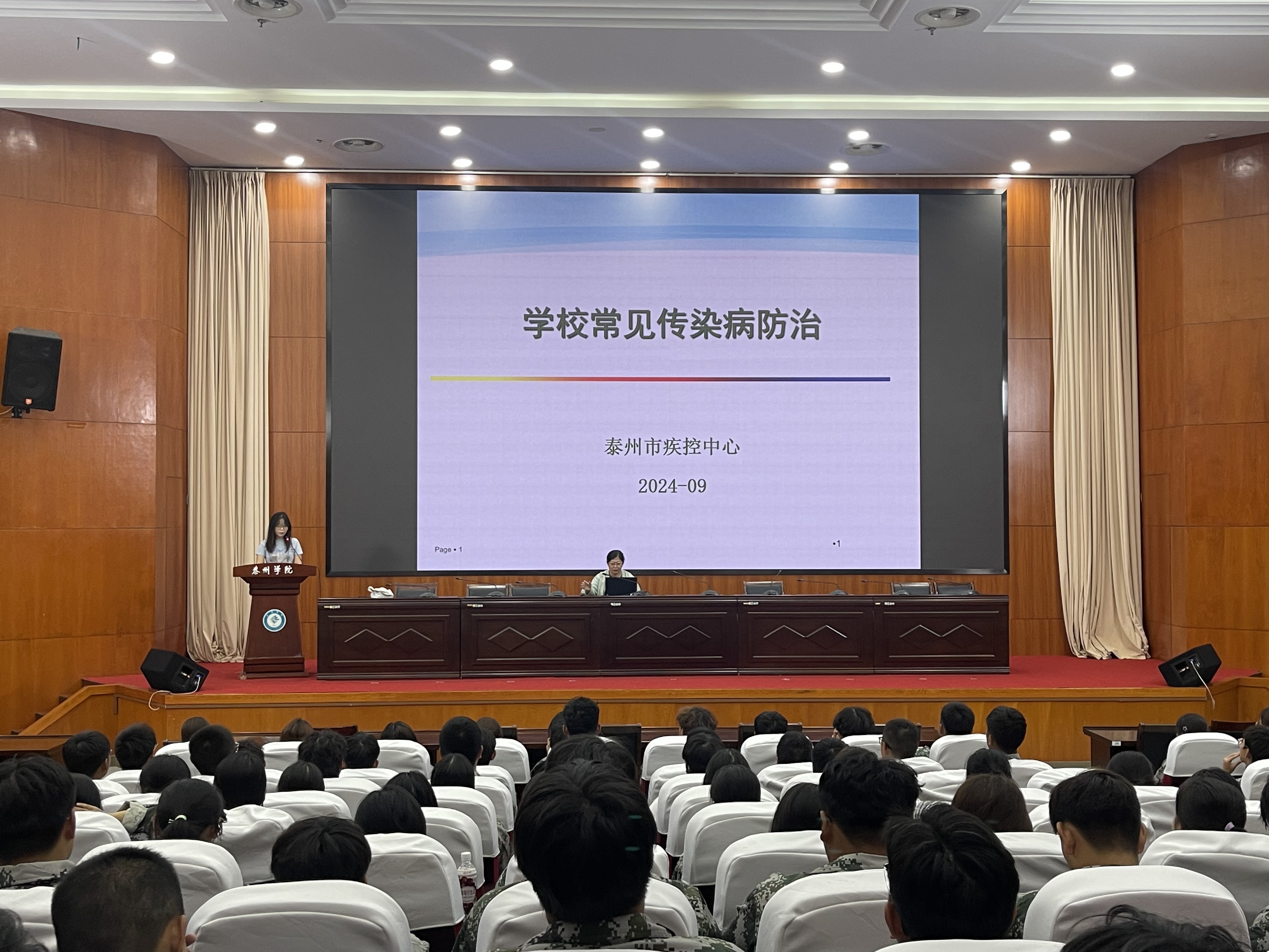 为提高同学们对传染病防治知识的了解,增强自我保护意识,降低传染病在校园内的传播风险,2024年9月23日晚,米兰官网邀请泰州市疾控中心慢病科陈静娟主任开展学校常见传染病防治讲座,200余名新生参加。