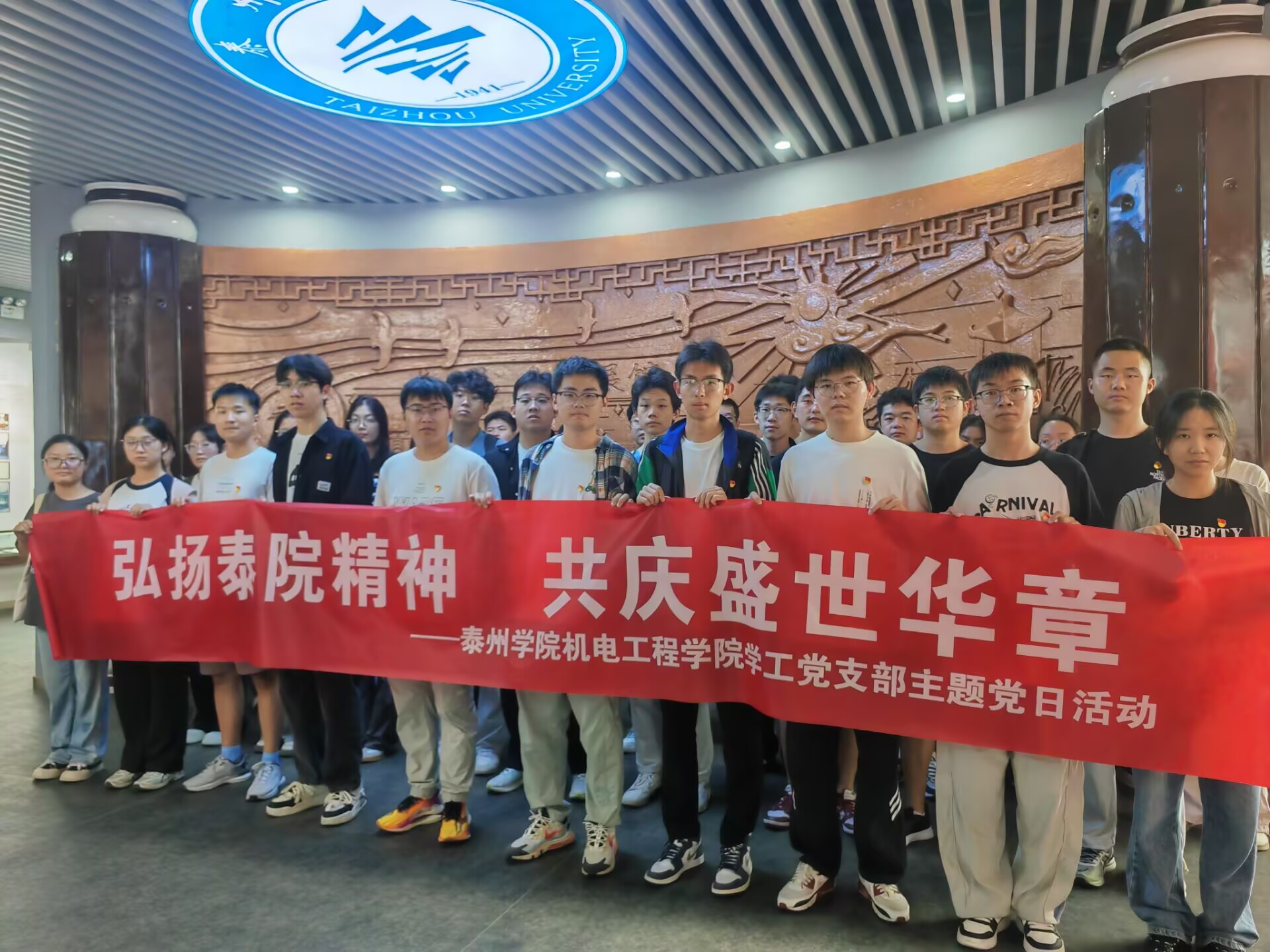 为弘扬“泰院精神”,激发党员爱校爱国热情,9月29日下午,机电工程学院学工党支部开展“弘扬泰院精神 共庆盛世华诞”主题党日活动,学工支部全体党员和部分入党积极分子参与本次活动。