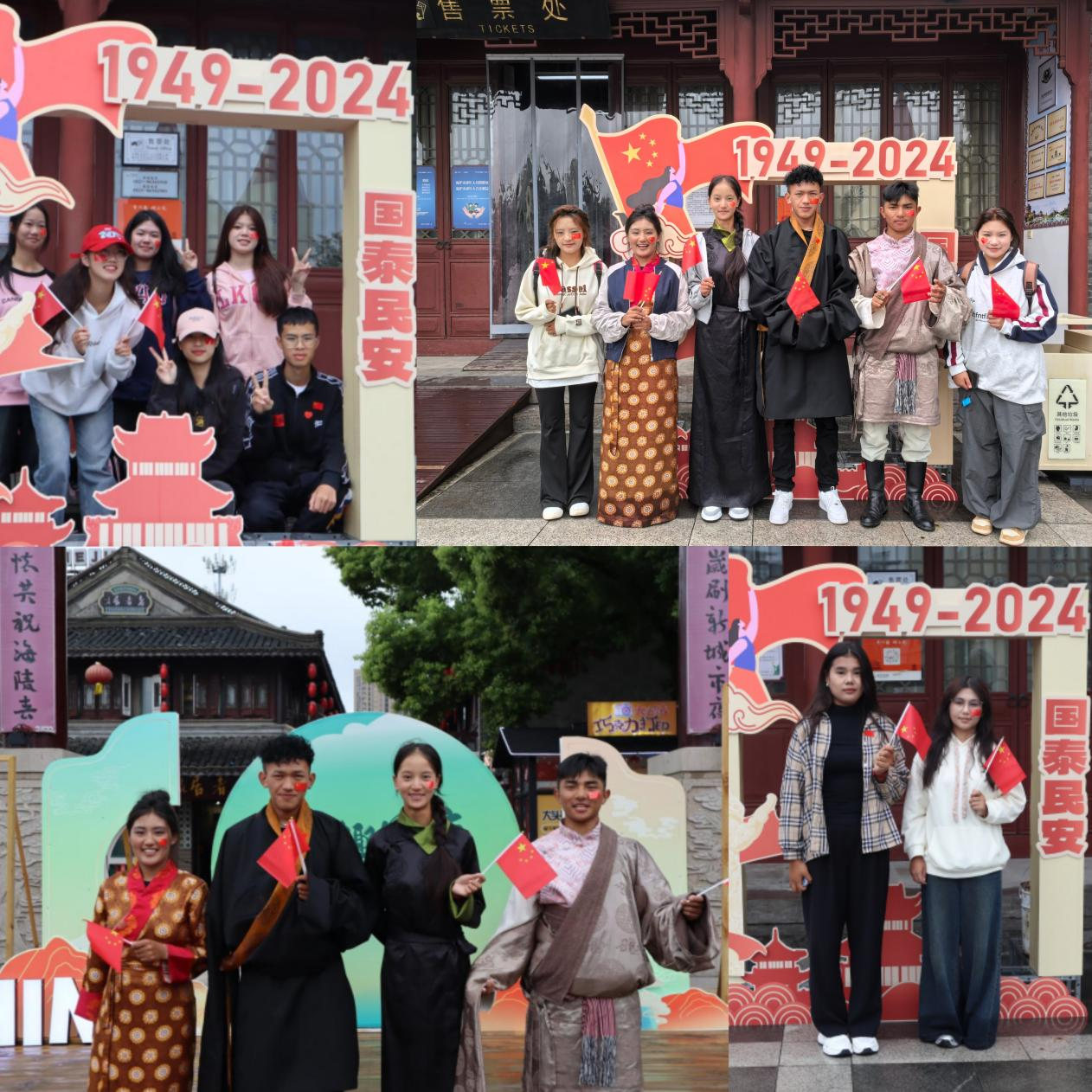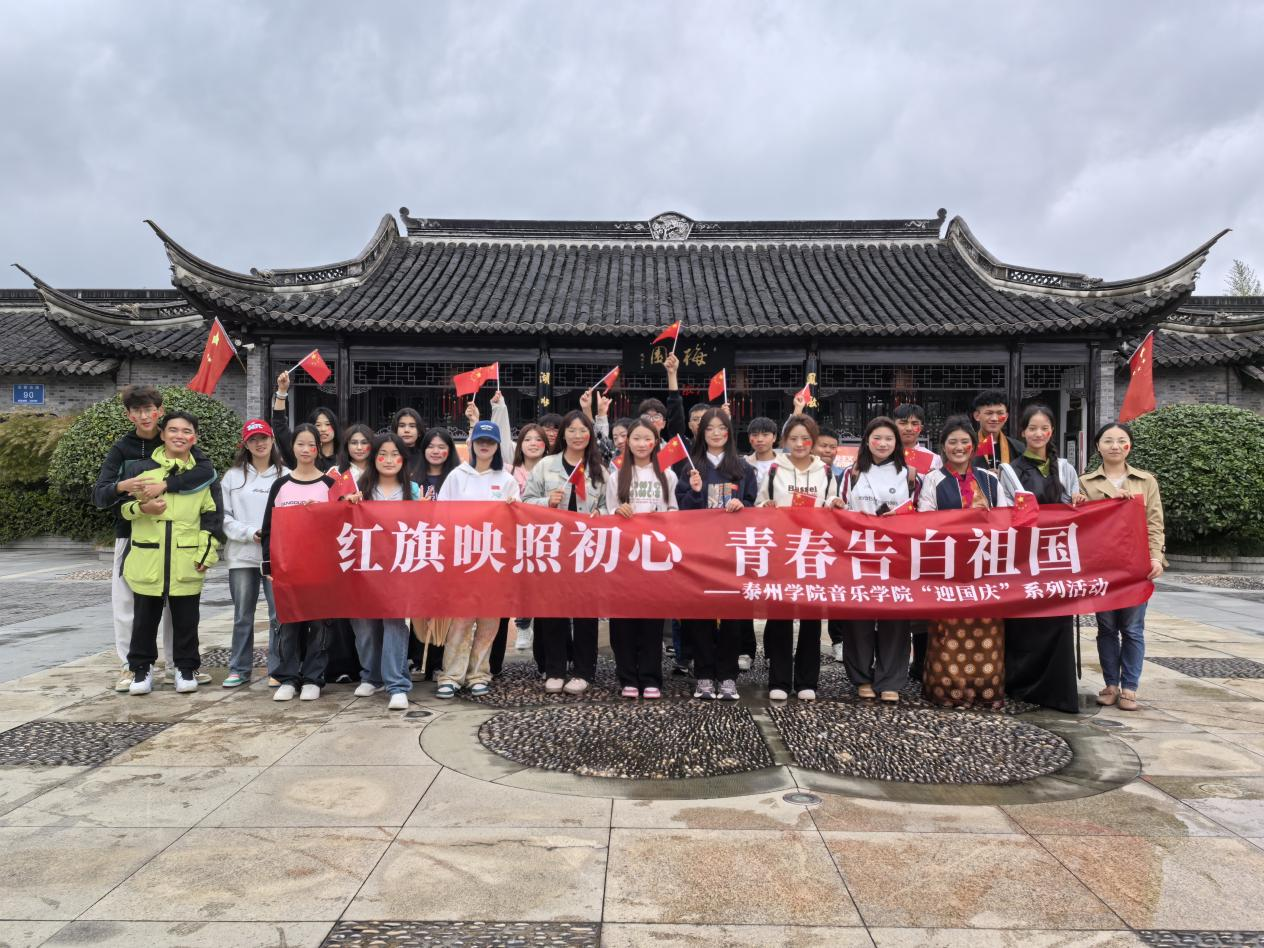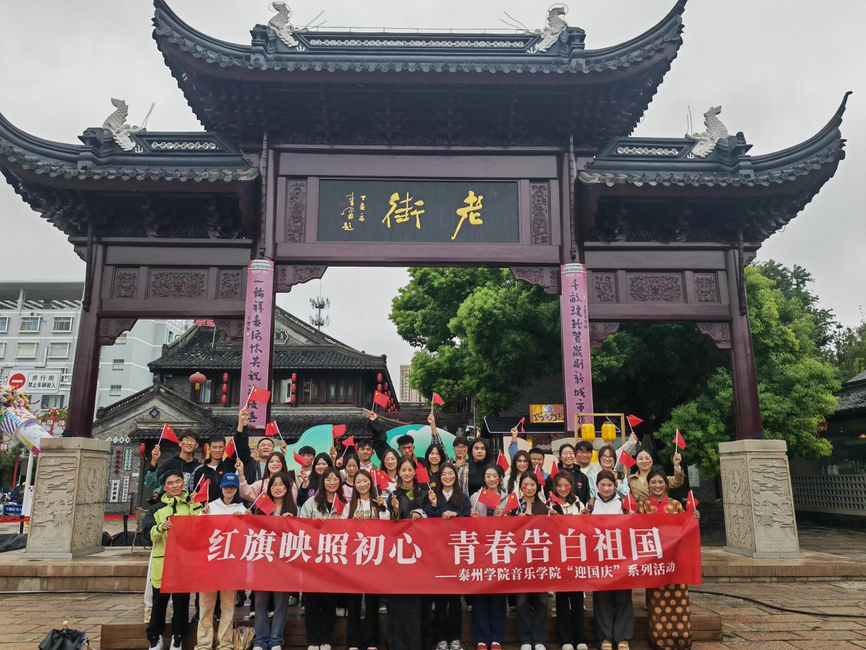 一张合影,留下美好回忆。在老街、望海楼、梅园等泰州地区标志性建筑前,师生们与国旗同框,用简单质朴的方式,为祖国献上最诚挚的祝福。一张张照片,是学生对祖国母亲深深的热爱,也是他们大学生活的珍贵回忆。