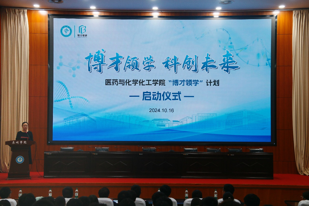 医药与化学化工学院党总支书记朱诚在启动仪式上致辞,对全院师生提出两点希望:一是希望博士教师弘扬“扎根、深耕”的泰院精神,扎根教育沃土,深耕学科前沿,做学生成长成才的领路人;二是希望青年学生弘扬“勇闯、善创”的泰院精神,勇闯科创蓝海,善创科技成果,做挺膺担当的奋斗者。