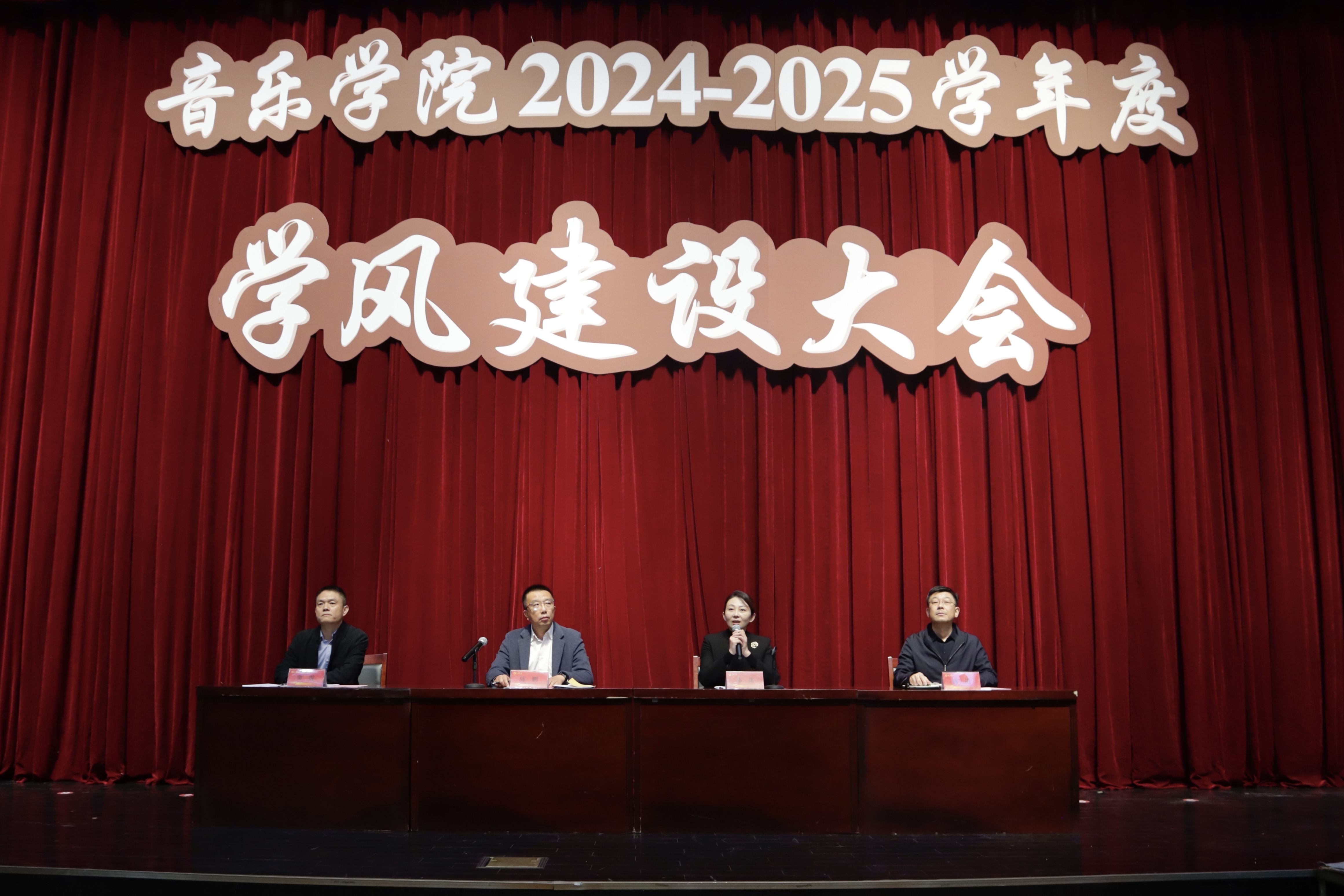 为落实立德树人根本任务,进一步加强学风建设,培养学生良好的学习习惯,促进学生健康成长和综合素质提升。2024年10月23日下午,音乐学院在大学生活动中心隆重召开2024-2025学年度学风建设大会。音乐学院全体师生参加,会议由院长孙菡主持。