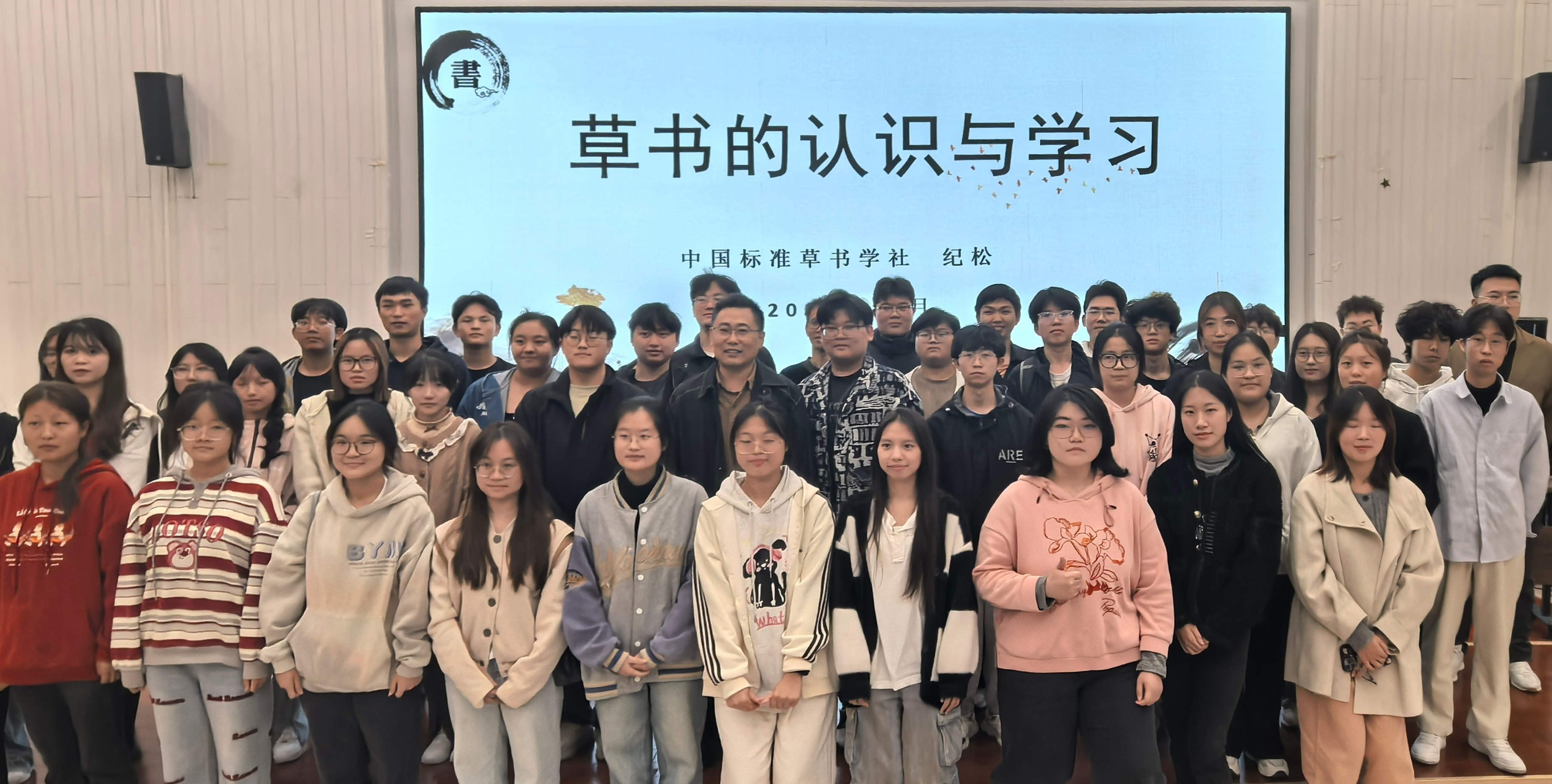 在讲座过程中,纪松还结合自己多年的创作经验,分享了学习草书的方法和心得。他强调,草书不仅是一种文字书写形式,更是一种艺术表达手段,需要学习者具备扎实的书法基础、敏锐的艺术感悟力和丰富的情感体验。同时,他也鼓励在场的同学们要勇于尝试、不断创新,努力在草书艺术的道路上走得更远。讲座结束后,纪松还与现场同学进行了互动交流,耐心解答了大家提出的问题。