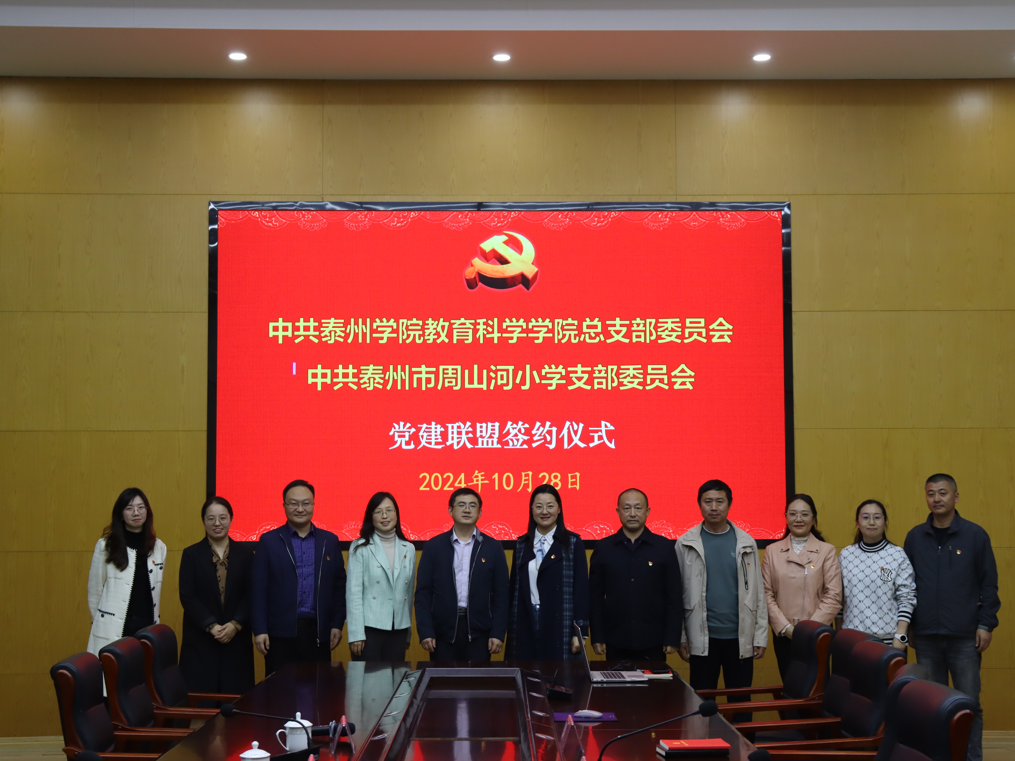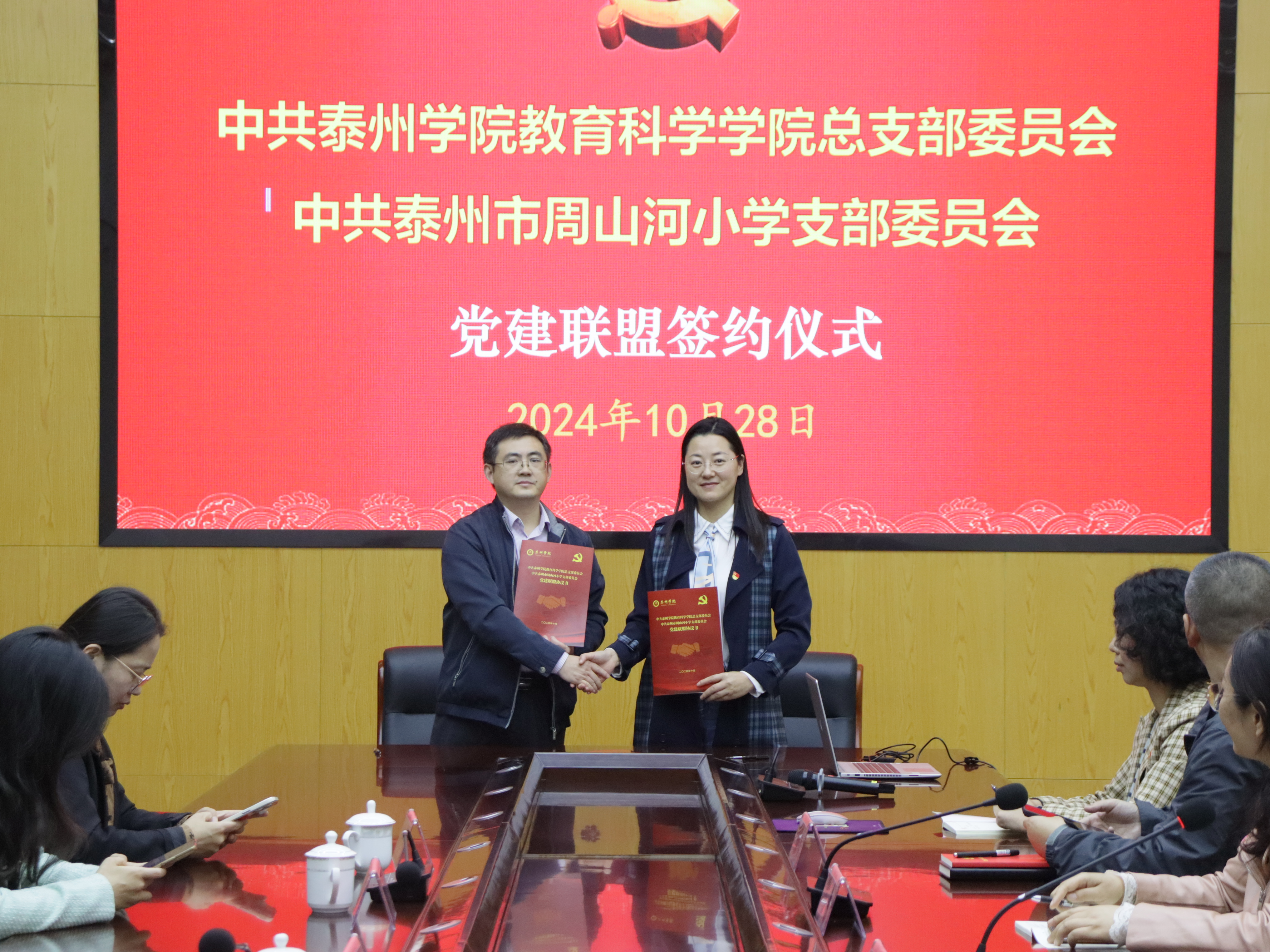 10月28日下午,中共LETOU国际米兰官网LETOU国际米兰官网总支部委员会与中共泰州市周山河小学支部委员会共建党建联盟。泰州市周山河小学校长顾爱芳,见习校长陈婷,LETOU国际米兰官网党总支书记仲宁,党总支副书记、副院长孙晓敏,副院长朱以财、徐莹莹,实习基地带队教师祝晶莹及学院14名实习生等参加活动。