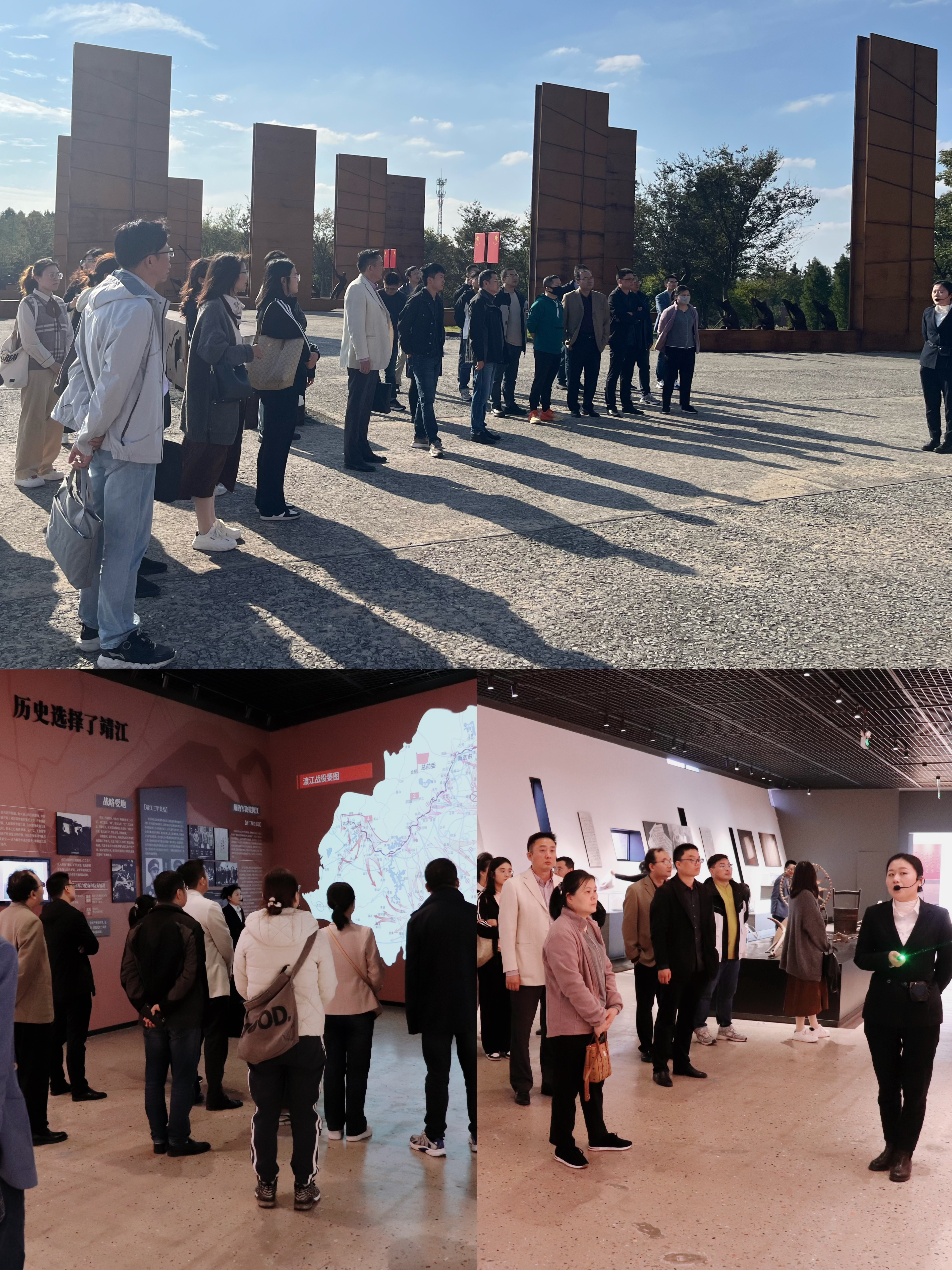 大家首先参观了“东线第一帆”渡江战役纪念馆,通过参观,大家了解到了渡江战役的历史背景和重要意义,也被战役中革命先烈们的牺牲精神和靖江人民自发支援参与渡江战役的军民团结精神所震撼和感动。