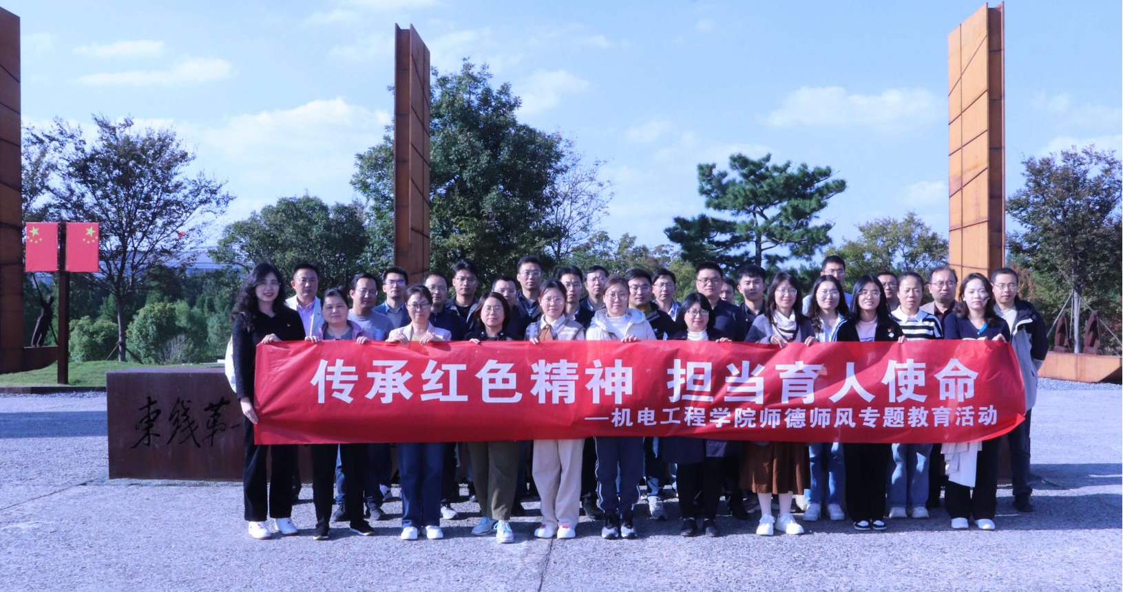 强国必先强教,强教必先强师。为深入学习贯彻党的二十届三中全会精神,进一步贯彻落实习近平总书记关于教育的重要论述及全国教育大会精神,引导教职工大力弘扬教育家精神,树立“躬耕教坛、强国有我”的崇高志向和抱负,10月30日,机电工程学院在红色教育基地——“东线第一帆”纪念馆,开展“传承红色精神 担当育人使命”主题党日活动暨师德师风专题教育活动,学院全体教师参加本次活动。