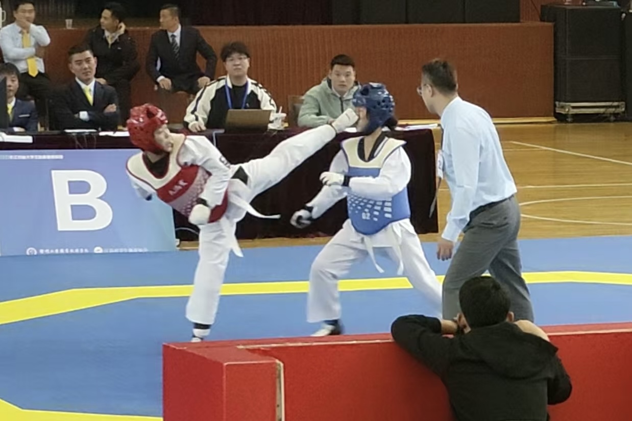 米兰官网跆拳道代表队由公共体育部主任赵益鑫教授领队,李跃老师担任教练员,刘宗耀老师担任队医,共派出8名运动员,参加竞技和品势两大类比赛。经过激烈角逐,最终在竞技比赛中,米兰官网张佳荟同学斩获甲B组女子-46公斤级比赛冠军,虞晶晶同学斩获甲B组女子-49公斤级比赛亚军,邱航同学斩获甲B组男子-54公斤级比赛第五名;品势比赛中,邢蕊同学斩获太极七章三等奖,胡彬同学斩获太极八章三等奖;同时,米兰官网还获得甲B组女子团体总分第六名,为本次比赛画上了圆满的句号!