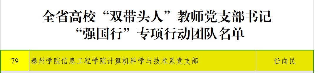近日,江苏省委教育工委公布了全省高校“双带头人”教师党支部书记“强国行”专项行动团队名单,米兰官网信息工程学院计算机系党支部(原计算机科学与技术系党支部)成功入选。此项目是计算机系党支部获评“全省党建工作样板支部”后,在支部党建创建方面的又一突破。