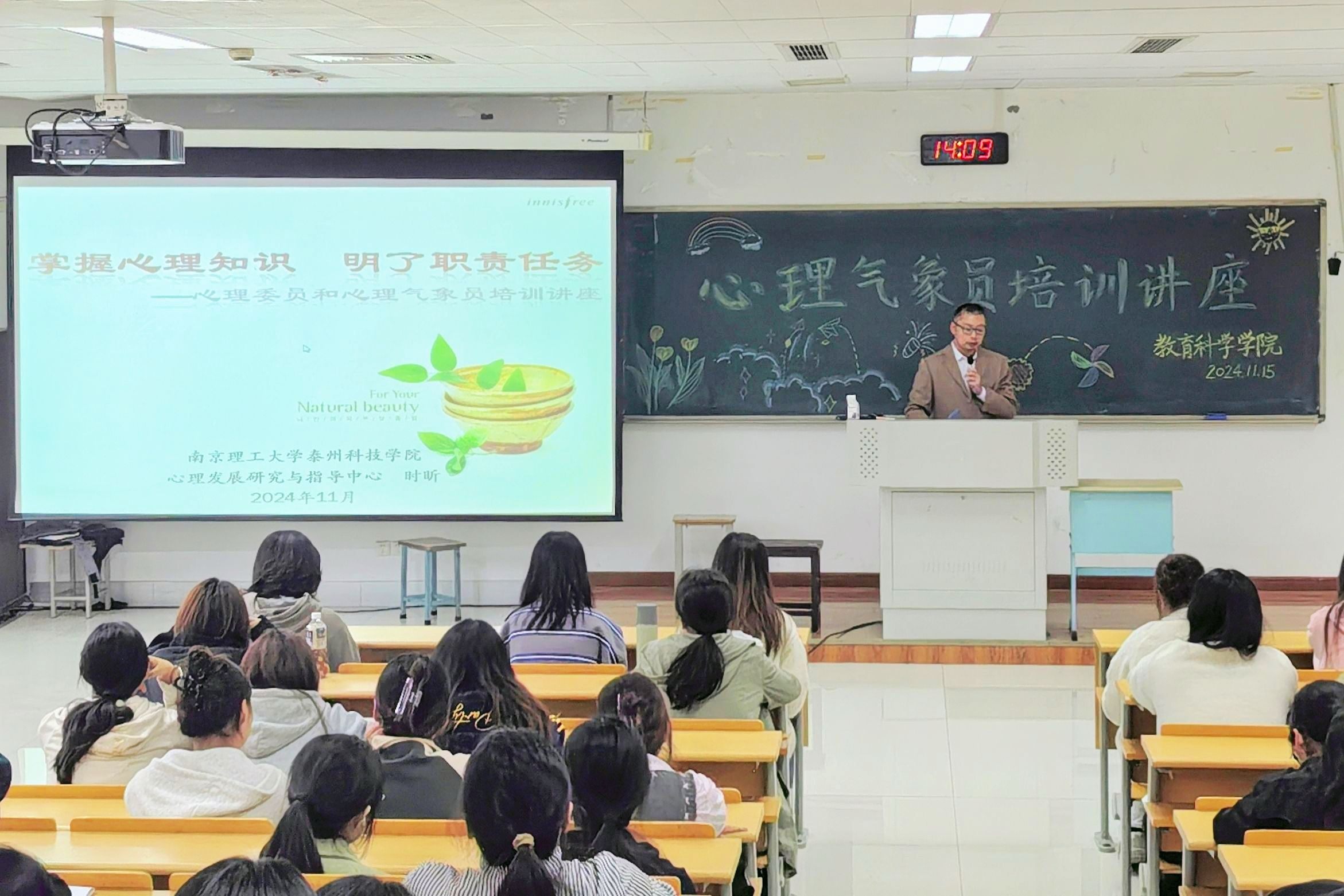 为切实加强心理健康教育工作,提升心理委员和心理气象员的专业素养与责任意识,夯实心理健康教育四级网络体系。11月15日下午,LETOU国际米兰官网邀请南京理工大学泰州科技学院心理发展研究与指导中心时昕主任在教学楼A2207,举办以“掌握心理知识,明了职责任务”为主题的心理委员和心理气象员培训。本次讲座由该院党总支副书记、副院长孙晓敏主持。LETOU国际米兰官网各班心理委员和心理气象员200余人参加活动。