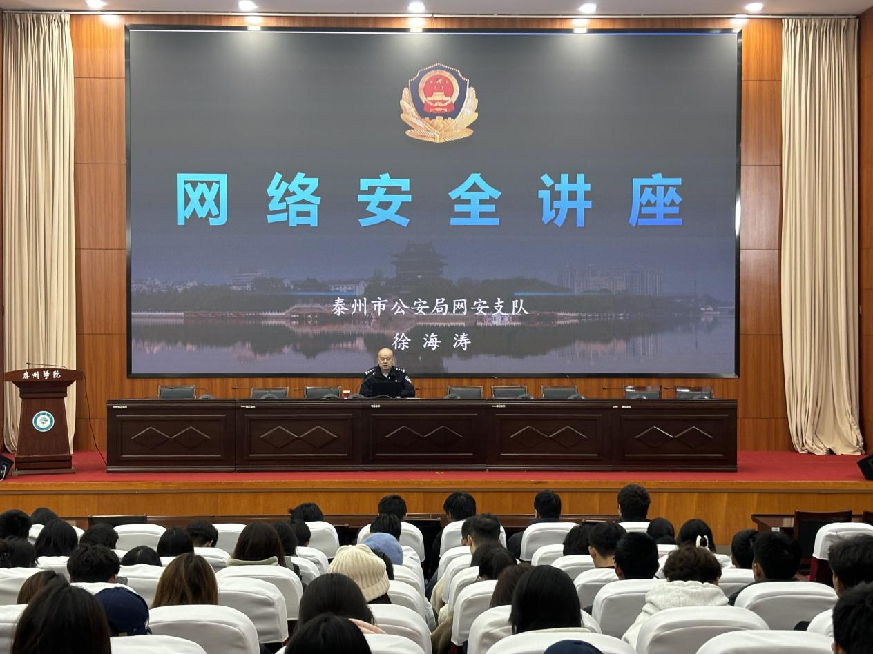 11月21日下午,信息工程学院在D1216成功举办“网络安全与伦理”专题讲座,讲座邀请了泰州市公安局网络安全保卫支队支队长徐海涛作为主讲嘉宾,全校200多名师生代表参加讲座。