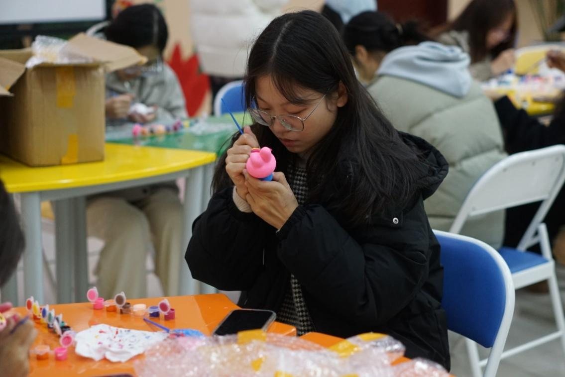 为进一步提高大学生心理健康水平,增强广大学生热爱生活、悦纳自我、应对挫折的能力,培养学生理性平和、乐观开朗的心理状态,帮助大学生构建心理健康防线,11月27日,在学校心理健康发展中心指导下,音乐学院组织开展了“心描心绘,汇聚美好”石膏绘画活动。 活动伊始,志愿者们详细介绍了石膏手绘的流程和注意事项。随后,发放学院提前准备好的石膏白胚及绘画工具。 活动现场,同学们全神贯注投入创作。大家认真调配颜色,用心勾勒线条,仔细涂抹色彩,充分发挥天马行空的想象力,让原本单调的白胚变成了一个个童话世界里走出来的角色;同学们互相交流心得与技巧,互相欣赏和点评彼此的作品,现场气氛热烈而温馨。 此次石膏绘画主题活动,为大家提供了一个放松身心的平台,让同学们在繁忙的生活、学习之余,能静下心来享受手工创作带来的乐趣,缓解压力;同时,又培养了同学们的动手能力和审美能力,激发他们的创造力和想象力,进一步感受了艺术创作的千变万化,用色彩治愈心灵。 ![]() ![]() ![]() ![]() | |||