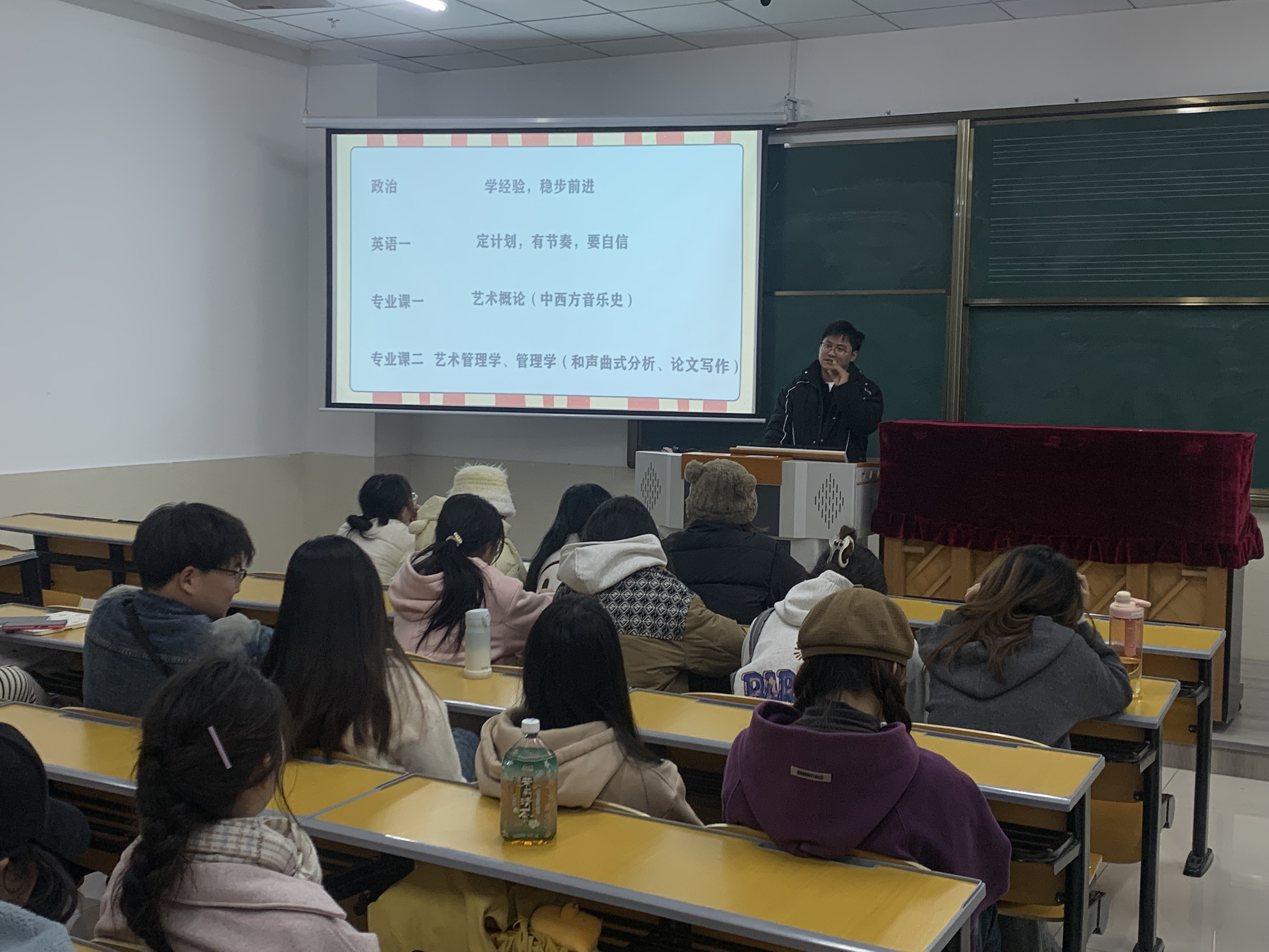为引导和帮助学生做好考研规划、明确定位和目标,提高备考效率。12月2日晚,音乐学院在音乐楼H3208举办“音‘研’追光,逐梦未来”考研笔试指导专题讲座,邀请经管学院梁宇老师和机电工程学院董自然老师主讲,学院25、26届共计80余名同学参加此次讲座。
